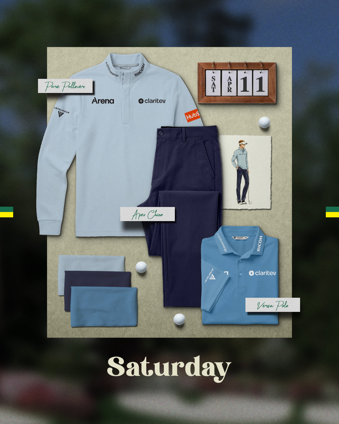 - Versa Polo (In Blue Heaven) – Performance jacquard fabric with moisture-wicking, anti-bacterial properties and stretch comfort, designed to keep you sharp and focused under pressure.