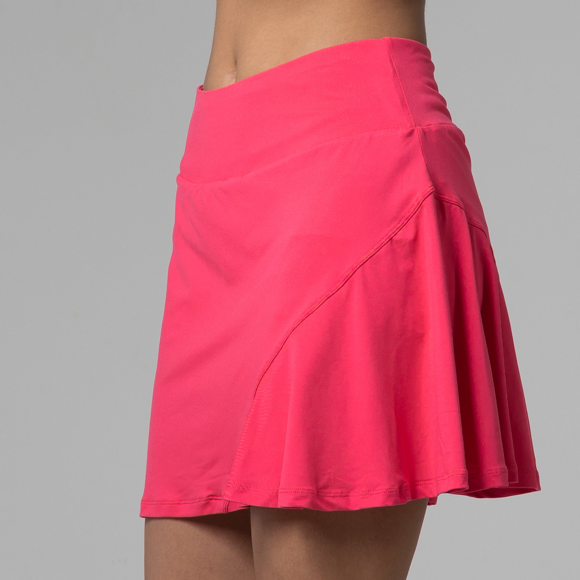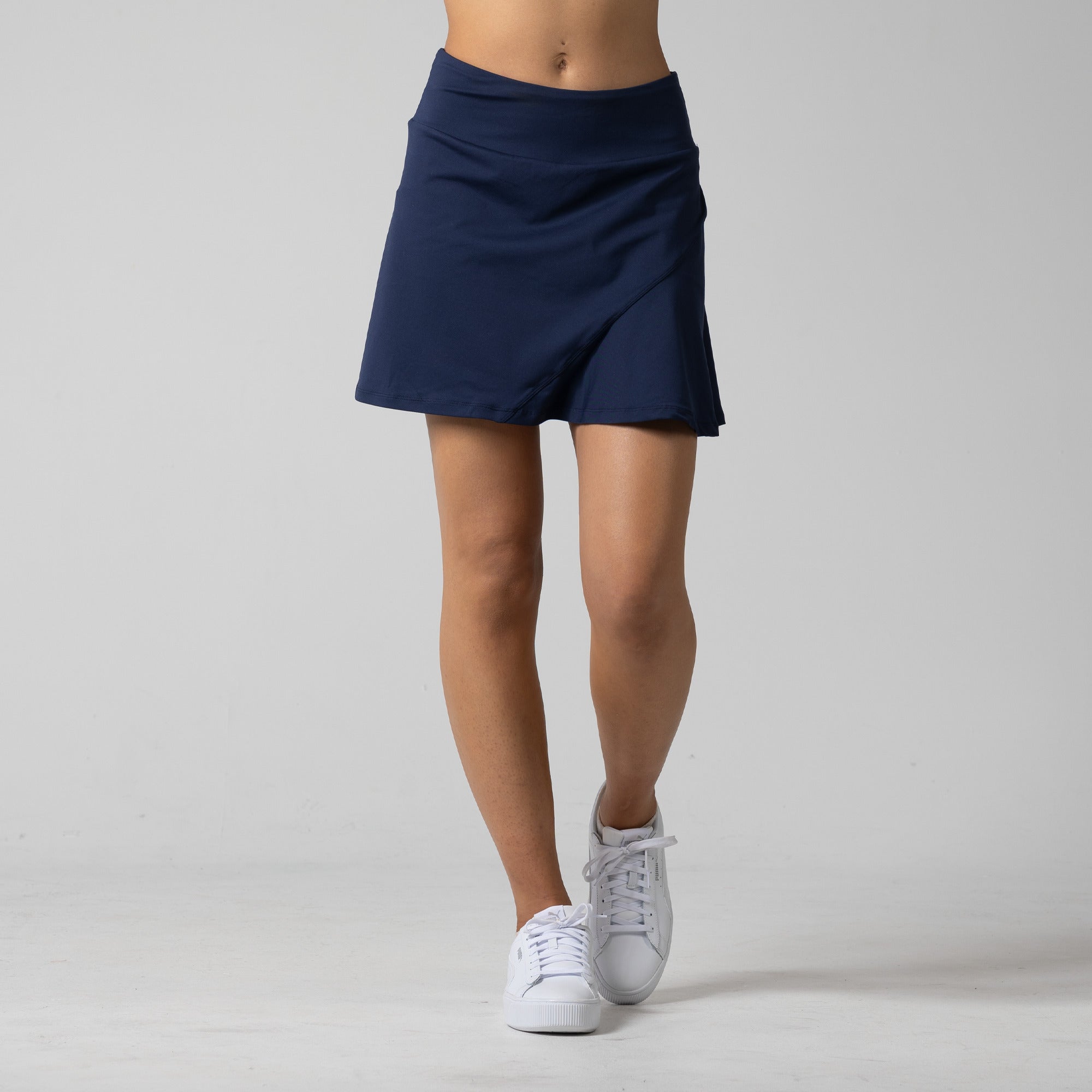 The Sally Skort is crafted from a blend of 86% polyester and 14% spandex, this skort offers excellent moisture-wicking capabilities to keep you dry and comfortable throughout your game, coupled with anti-static technology to ensure a smooth, cling-free experience. The elasticated waistband provides a secure and comfortable fit, while the inner shorts offer added coverage and support. The skort features a flared side panel that enhances its stylish design and allows for unrestricted movement, perfect for perfecting your swing. A practical zippered back pocket provides convenient storage for small essentials. Measuring 16 inches long on a size small and graded by 1/2 inch per size, the Sally Skort combines elegance and performance, making it an essential addition to your golf attire.