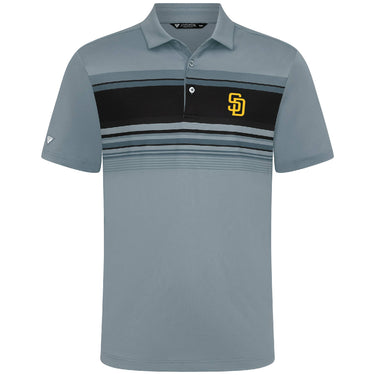 Elevate your game with the Onward men's polo, designed for avid golfers. This shirt features UPF50+ protection and moisture-wicking technology to keep you dry and shielded on sunny days. Its anti-bacterial properties ensure lasting freshness during play. The stylish stripe print across the front chest and a neat self-fabric collar with a built-in collar stay enhance its sophisticated and classic appearance. Tailored with a high-low hem and side slits for greater mobility, this polo is made from 92% recycled polyester and 8% spandex, blending eco-conscious fashion with functional design.