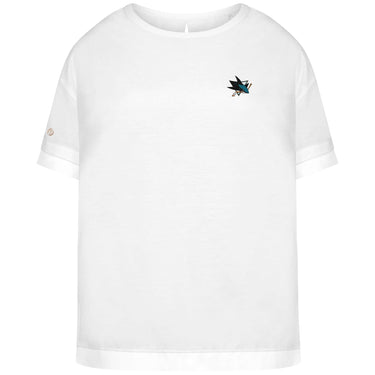 The Tulip top features a drop shoulder flowy silhouette that drapes gracefully, offering a flattering and comfortable fit for all body types. The open pleat design at the center back introduces an element of refined detail, adding visual interest and enhancing the top's airy feel. Contrasting semi-dull woven trim at the sleeve openings and body hem frames the piece with a subtle yet distinct touch, complementing the overall design. Made from a blend of 65% polyester and 35% cotton, the Tulip is soft to the touch and durable, perfect for both relaxed days and evenings out.