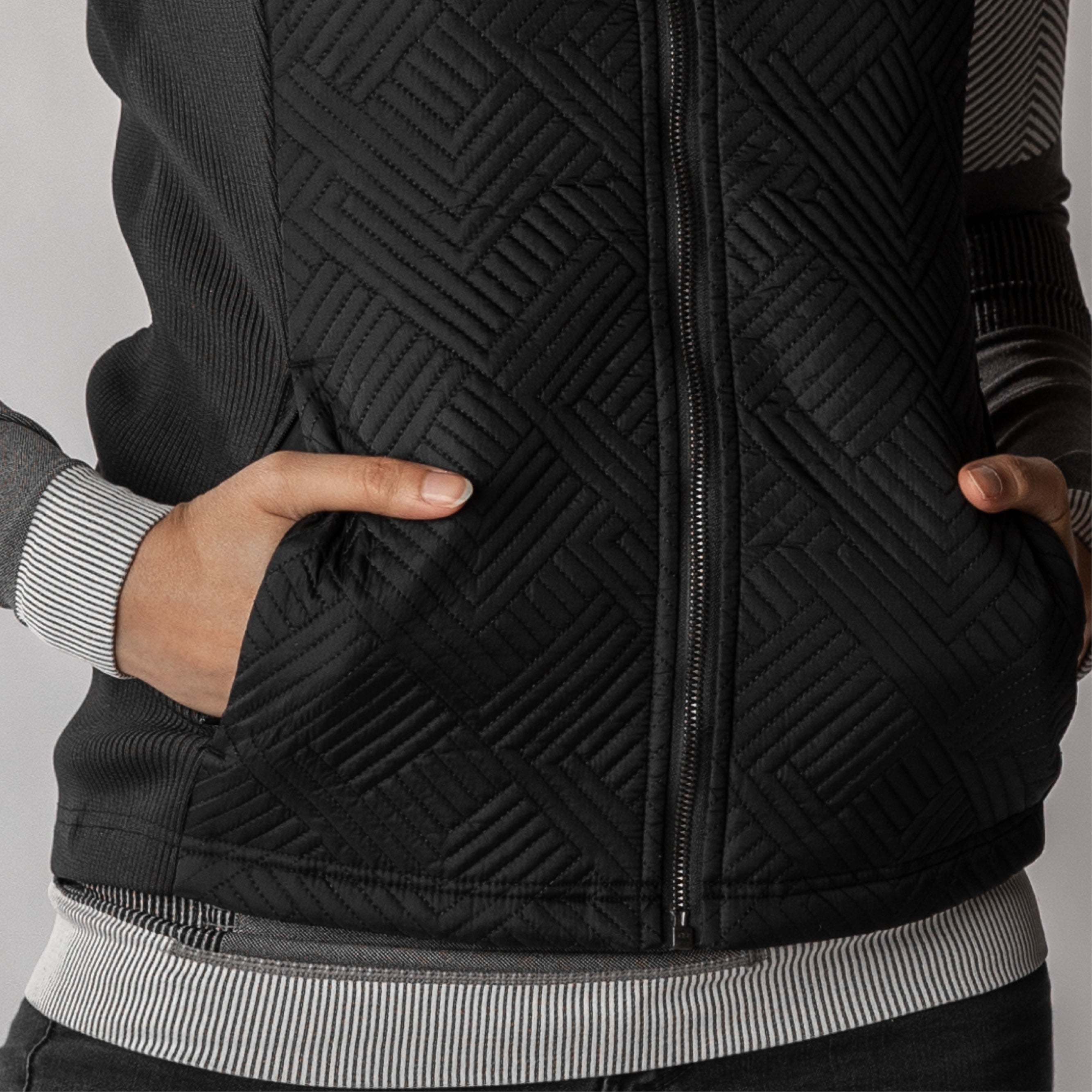 The Sense Vest is an essential piece of outerwear designed to keep you warm and dry in cooler conditions. This vest is expertly constructed from 100% nylon, featuring a quilted woven exterior with insulation that traps heat efficiently, while the water repellent finish shields you from rain and moisture. For added comfort and a better fit, ribbed side panels have been incorporated, allowing for flexibility and movement. The interior is brushed for an extra layer of warmth, making it ideal for chilly days. A sturdy Vislon metallic zipper not only enhances the vest's durability but also adds a sleek, modern touch to its design. Whether layered over a sweater for a fall hike or worn under a coat for additional insulation, the Sense Vest offers a combination of warmth, protection, and style.