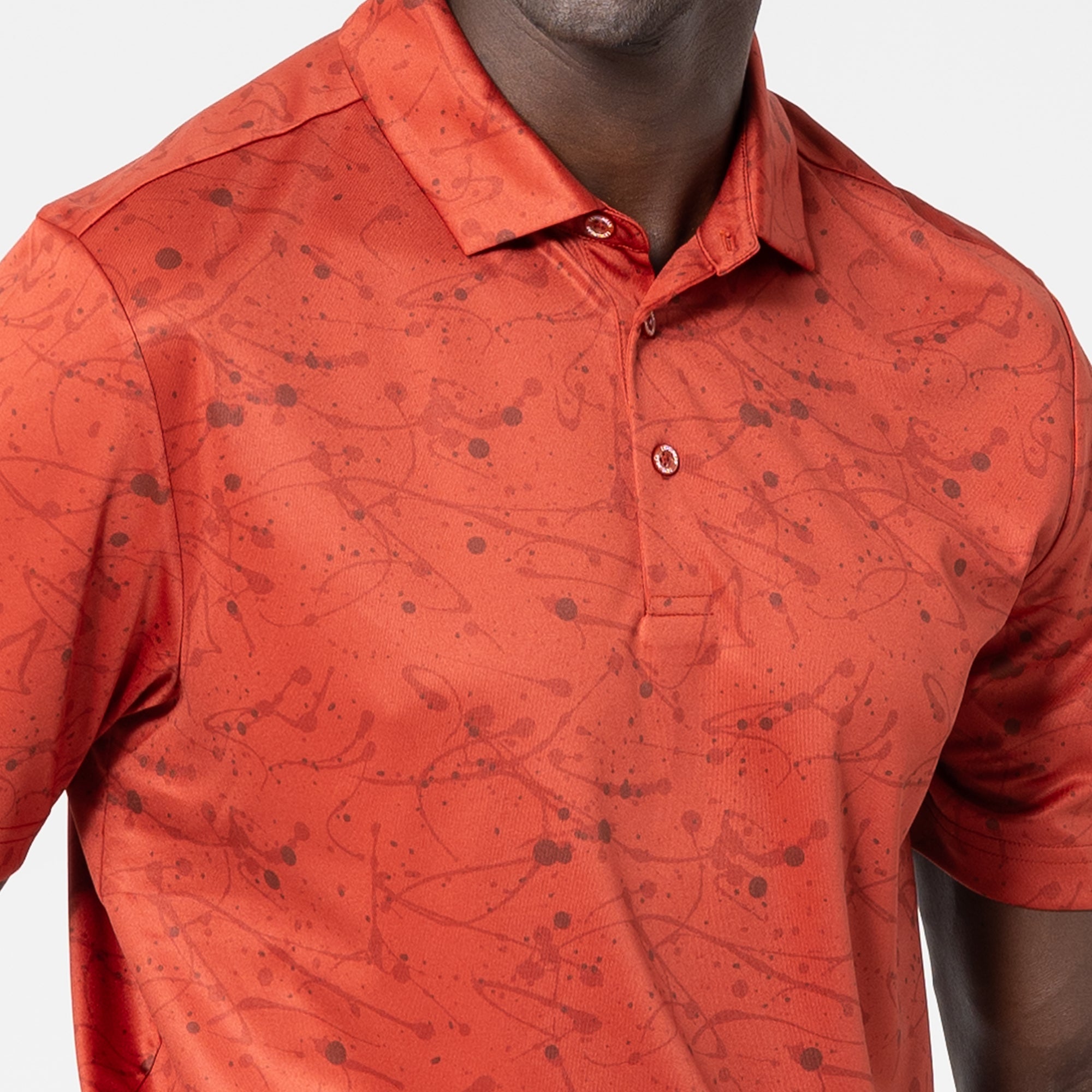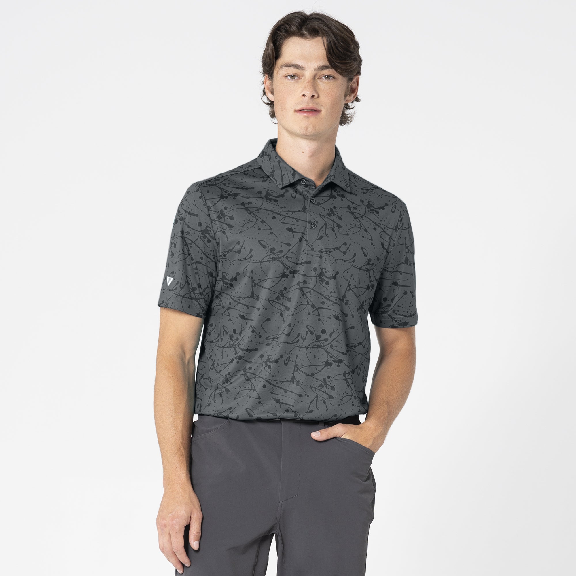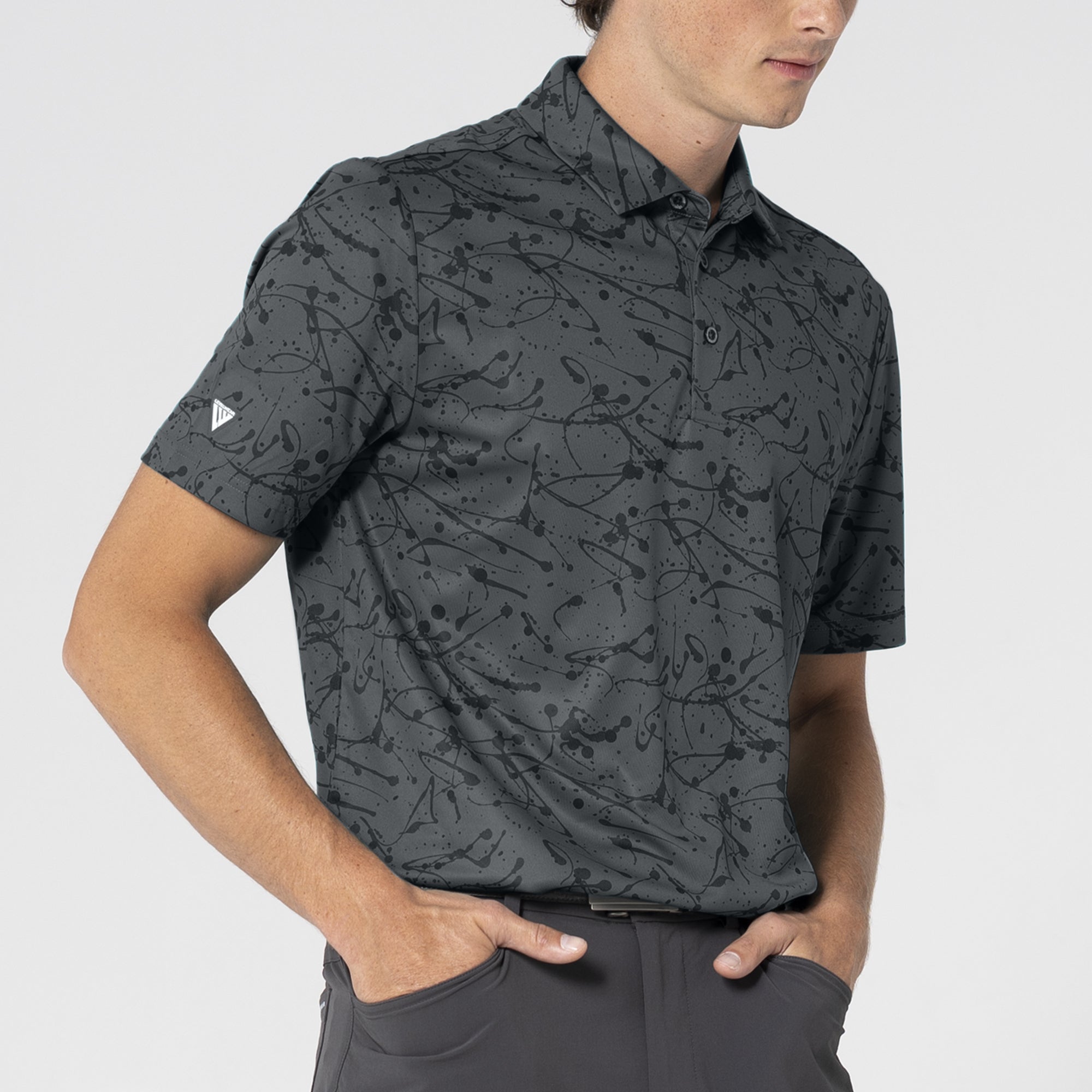 The Splash polo is tailored for the golf enthusiast who appreciates a blend of performance and standout fashion. Constructed from 100% polyester, this polo features moisture-wicking technology to ensure you remain dry and comfortable, even during the most intense rounds. It boasts a self-fabric collar with a built-in collar stay to keep your look sharp and crisp throughout your game. Adorned with a bold all-over print, it offers a vibrant aesthetic that stands out both on and off the golf course. Whether you're playing a casual round or competing in a tournament, the Splash Polo combines practical functionality with eye-catching style to enhance your golfing wardrobe.