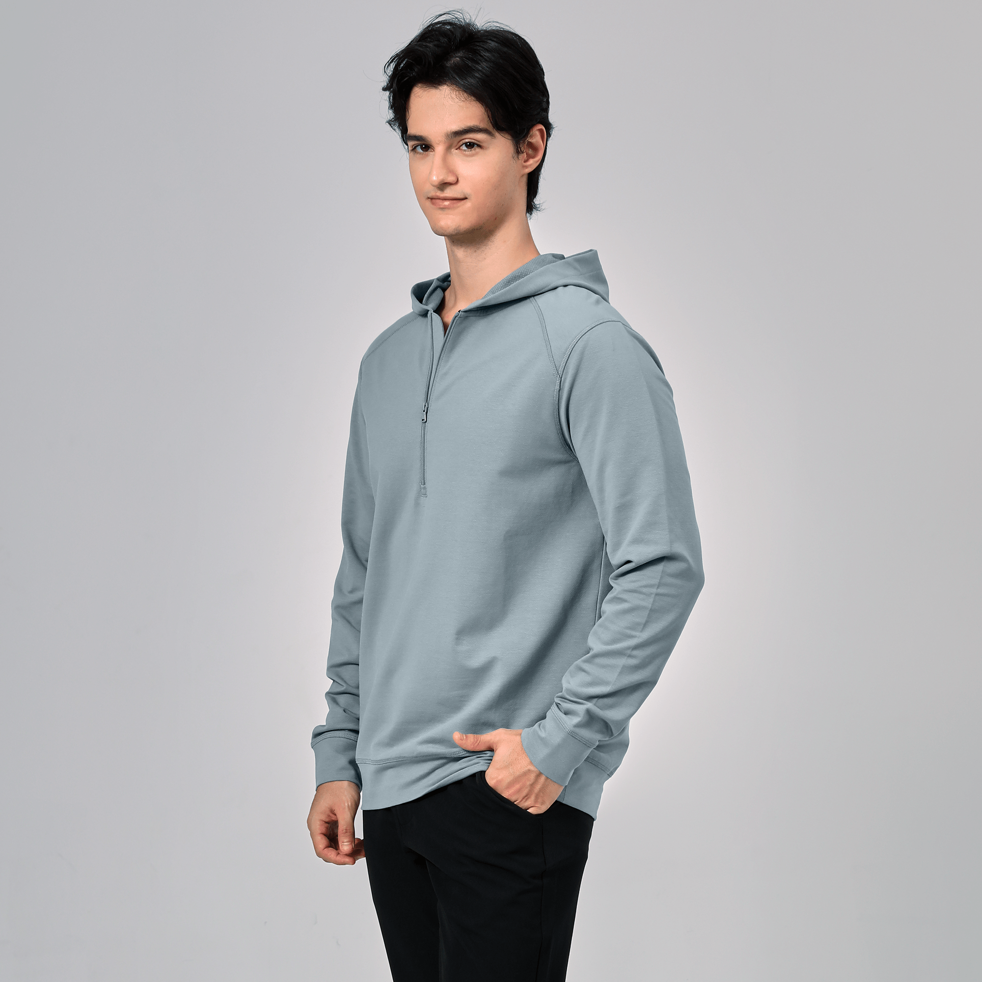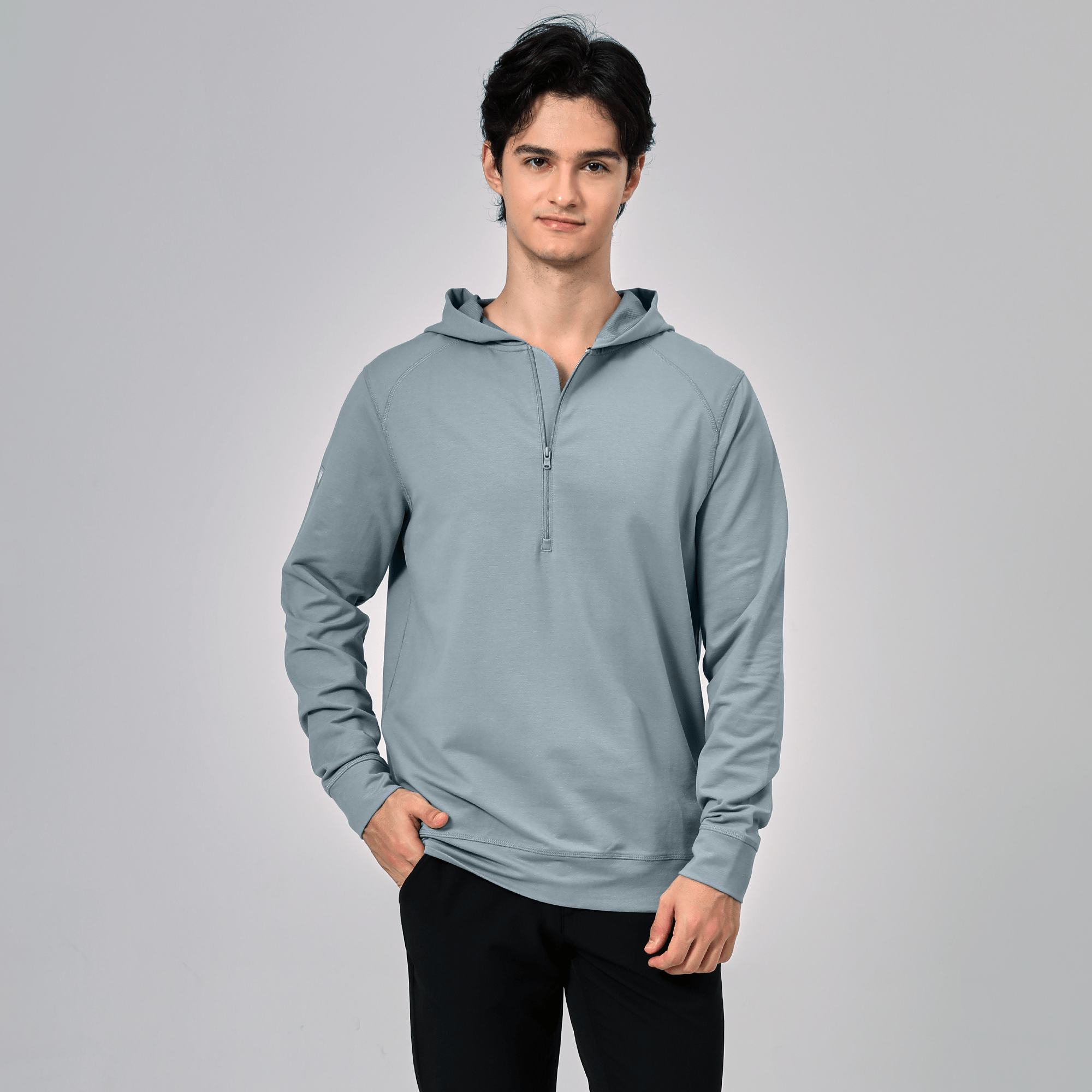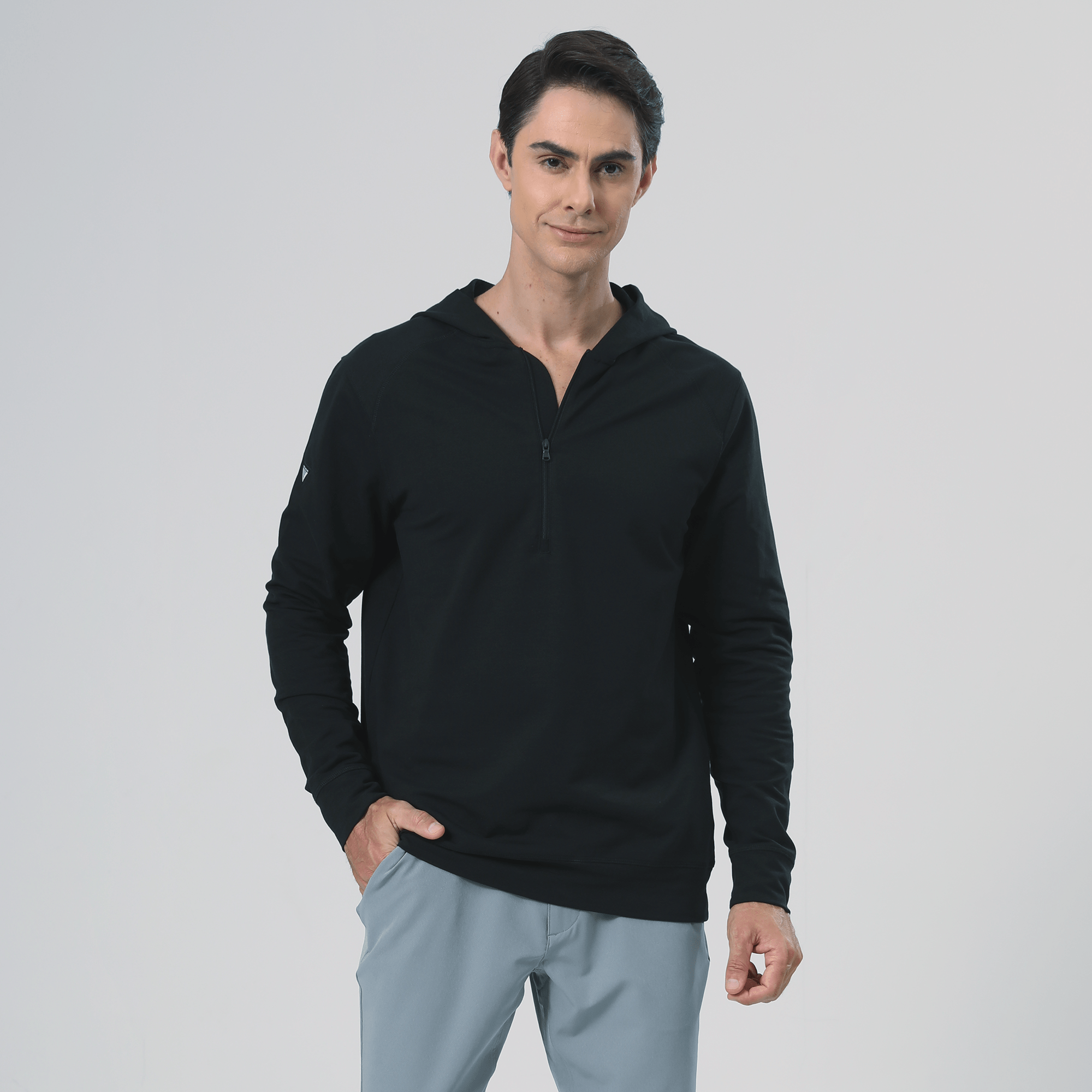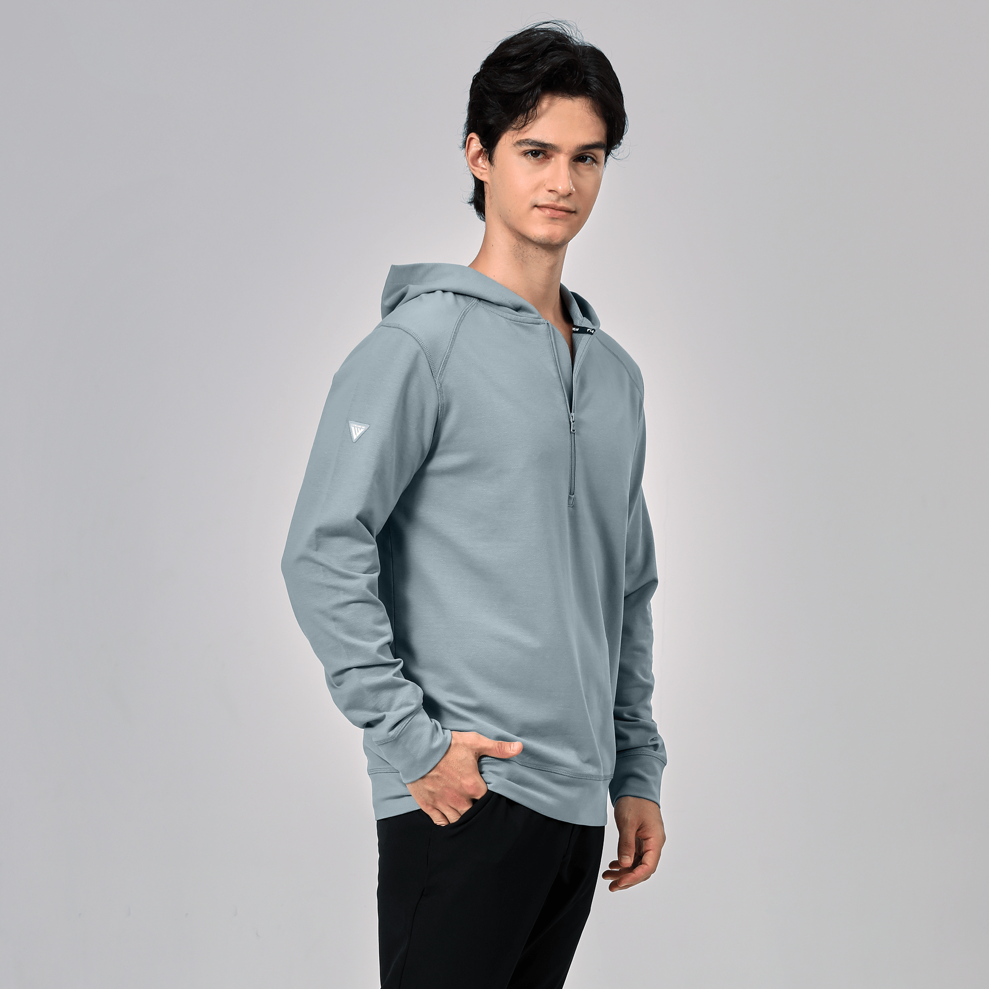 - QUARTER-ZIP WITH ATTACHED HOOD