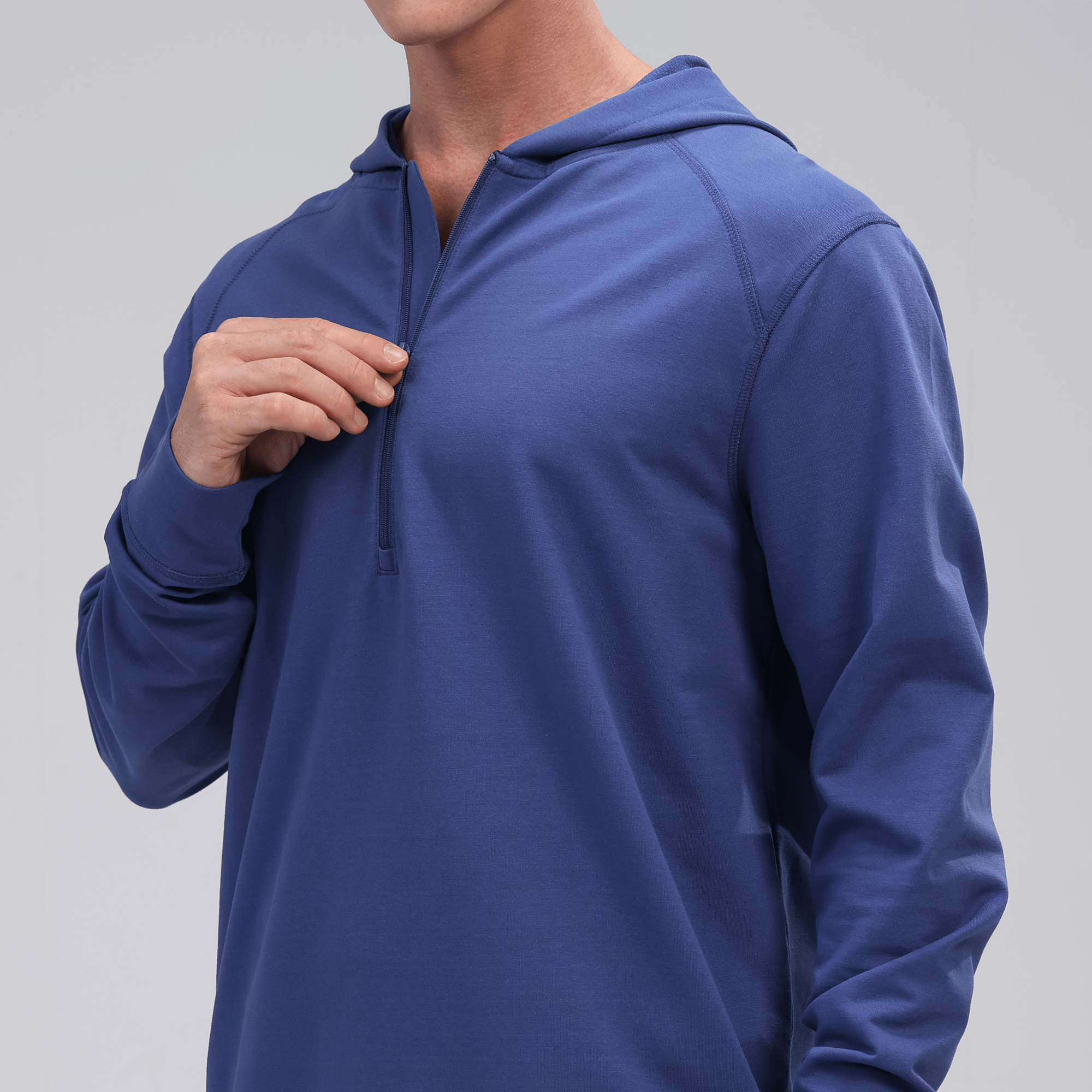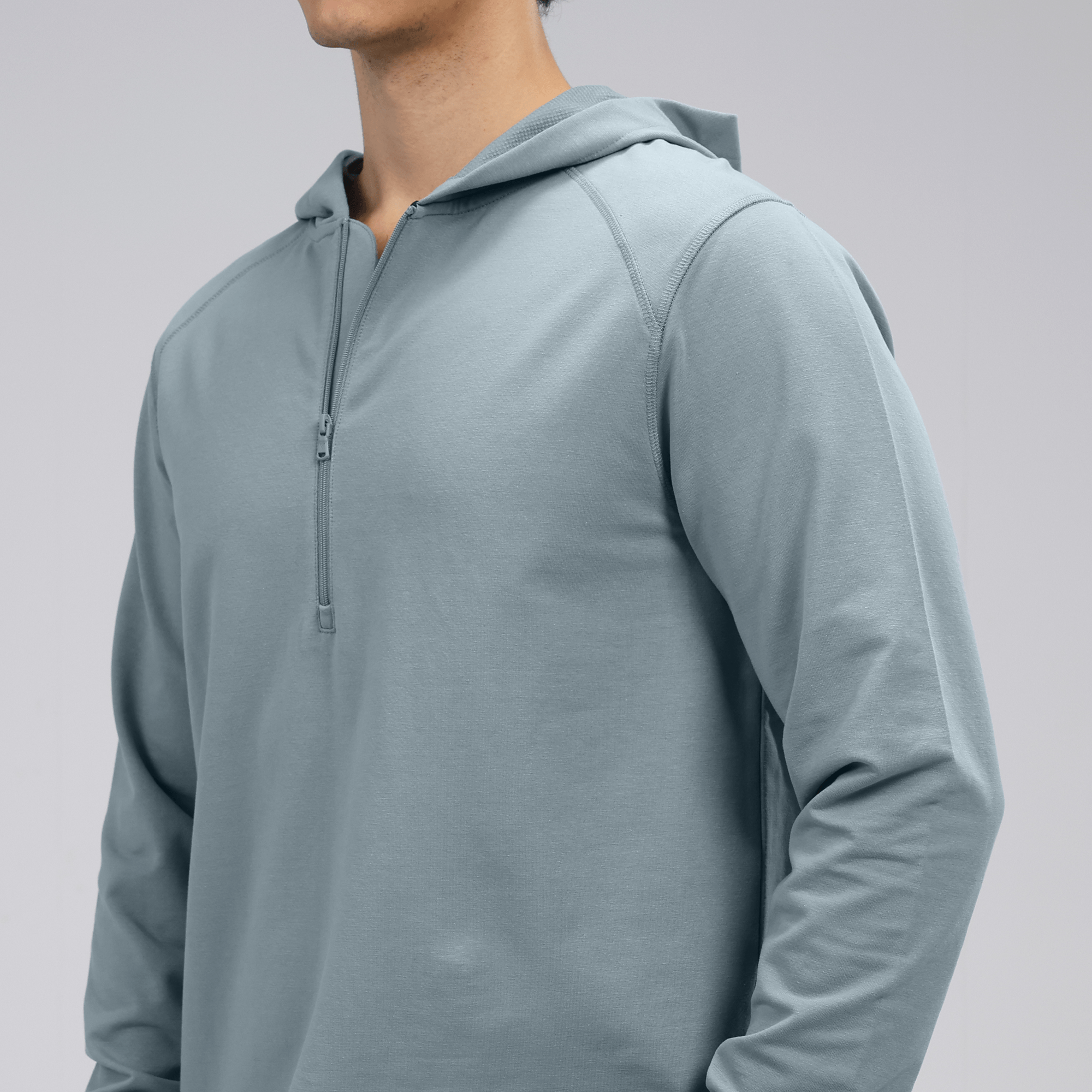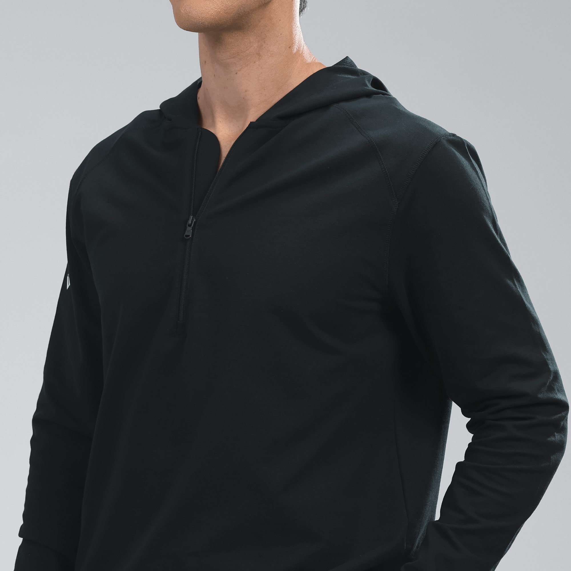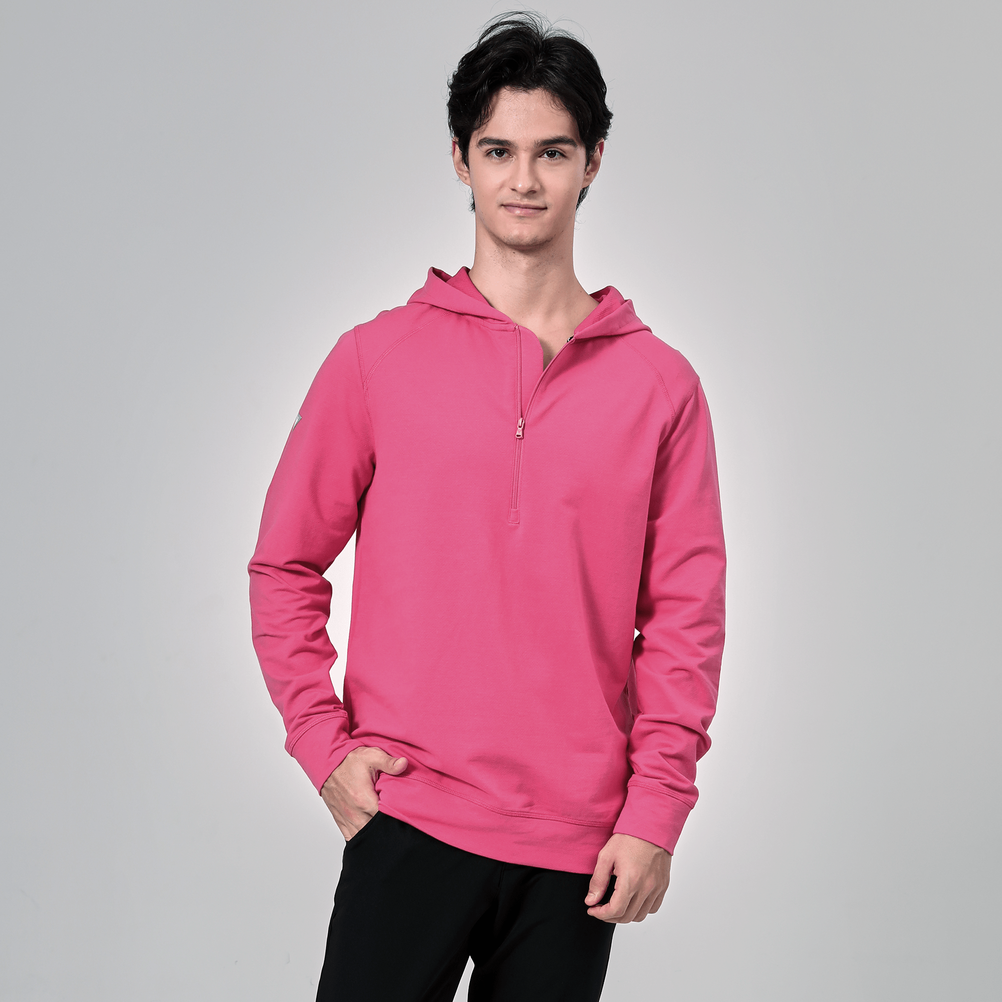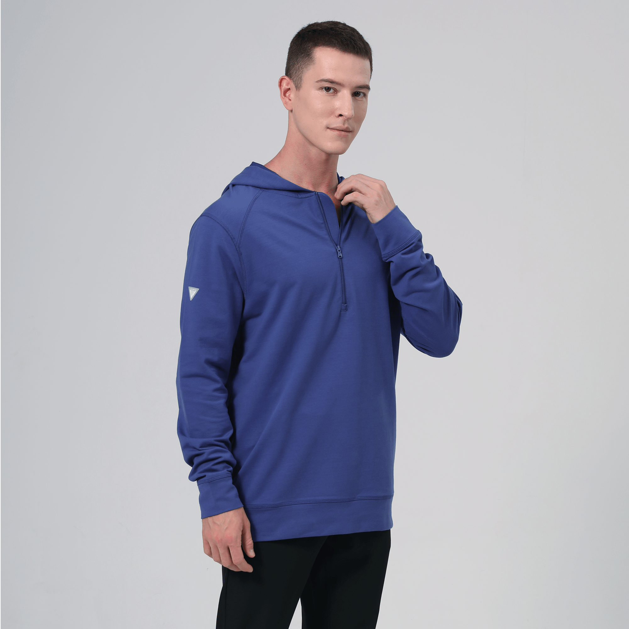 - QUARTER-ZIP WITH ATTACHED HOOD