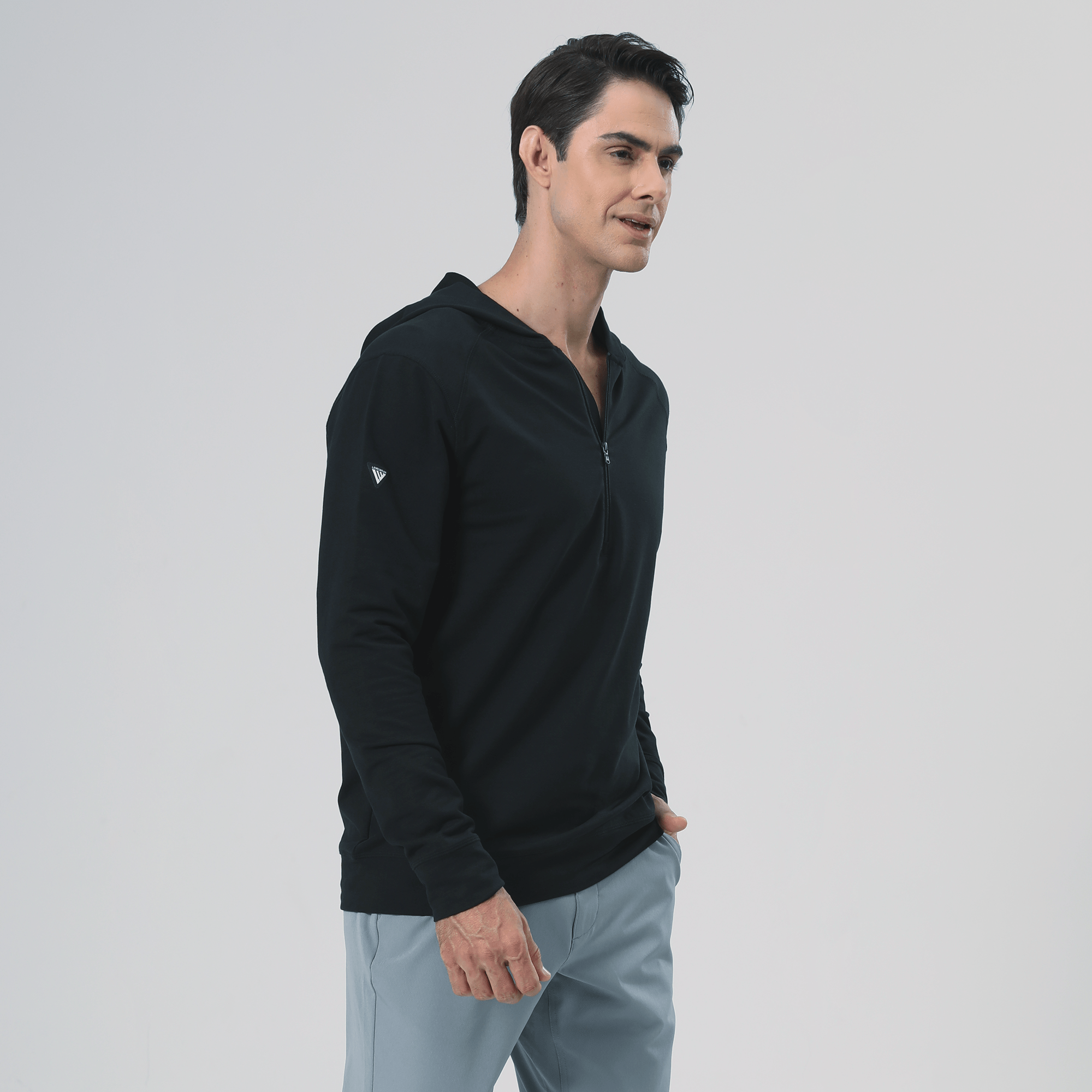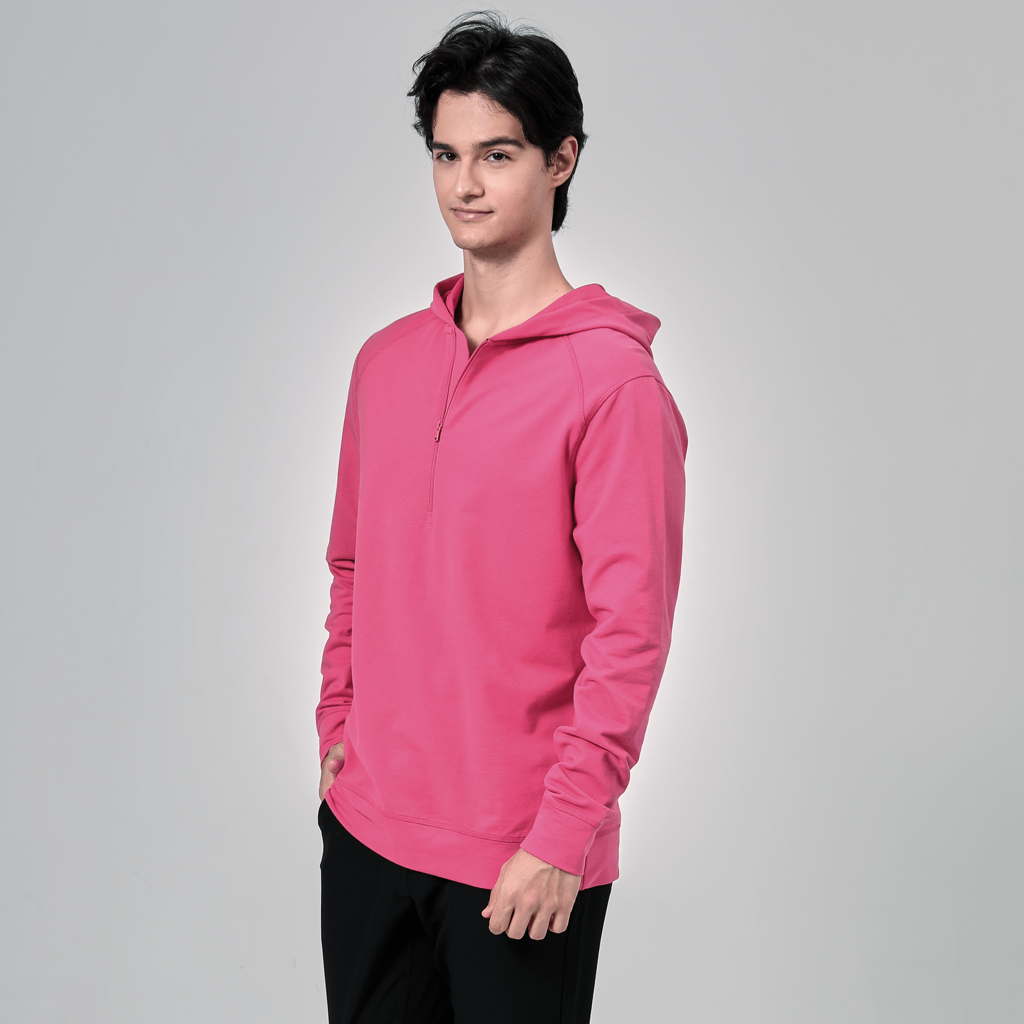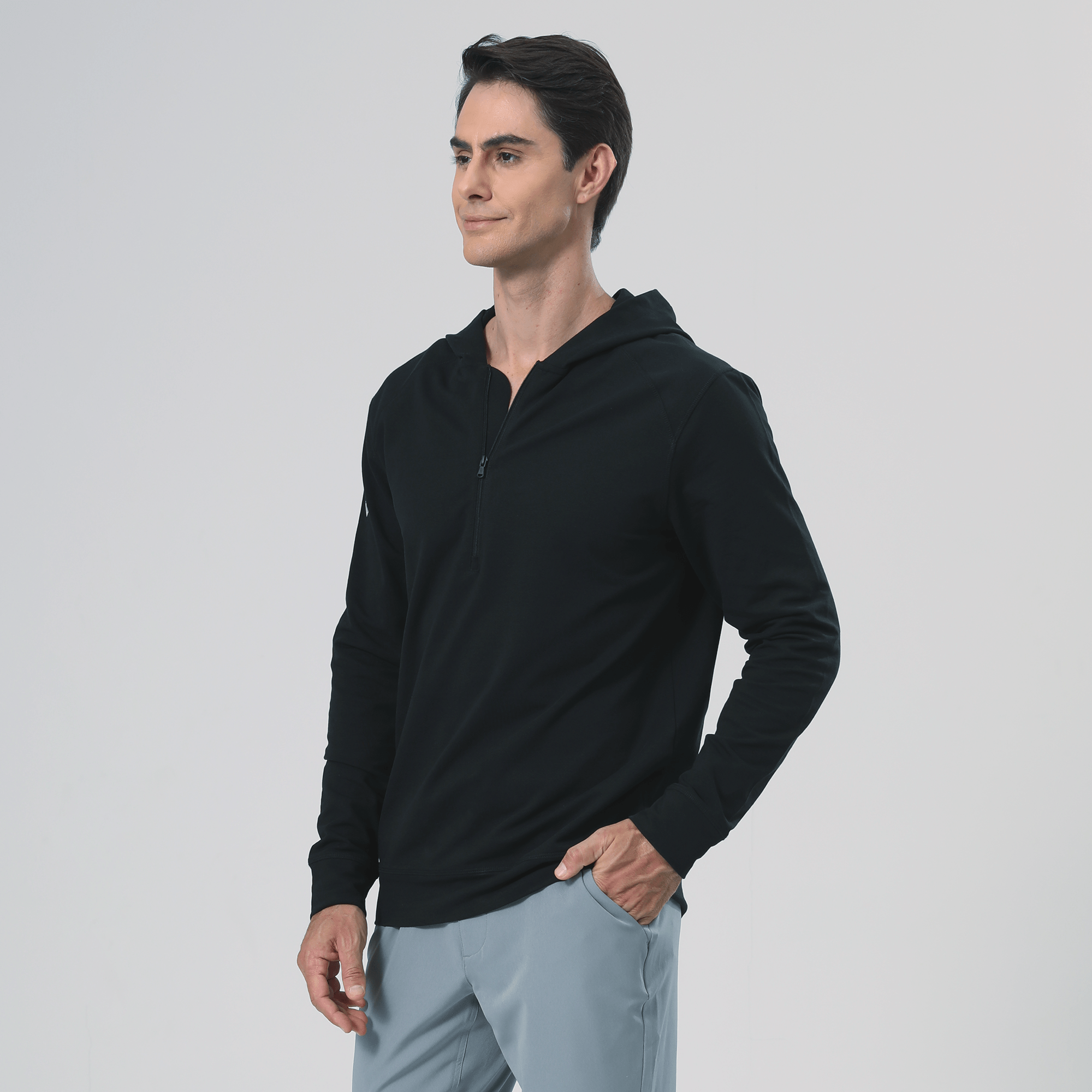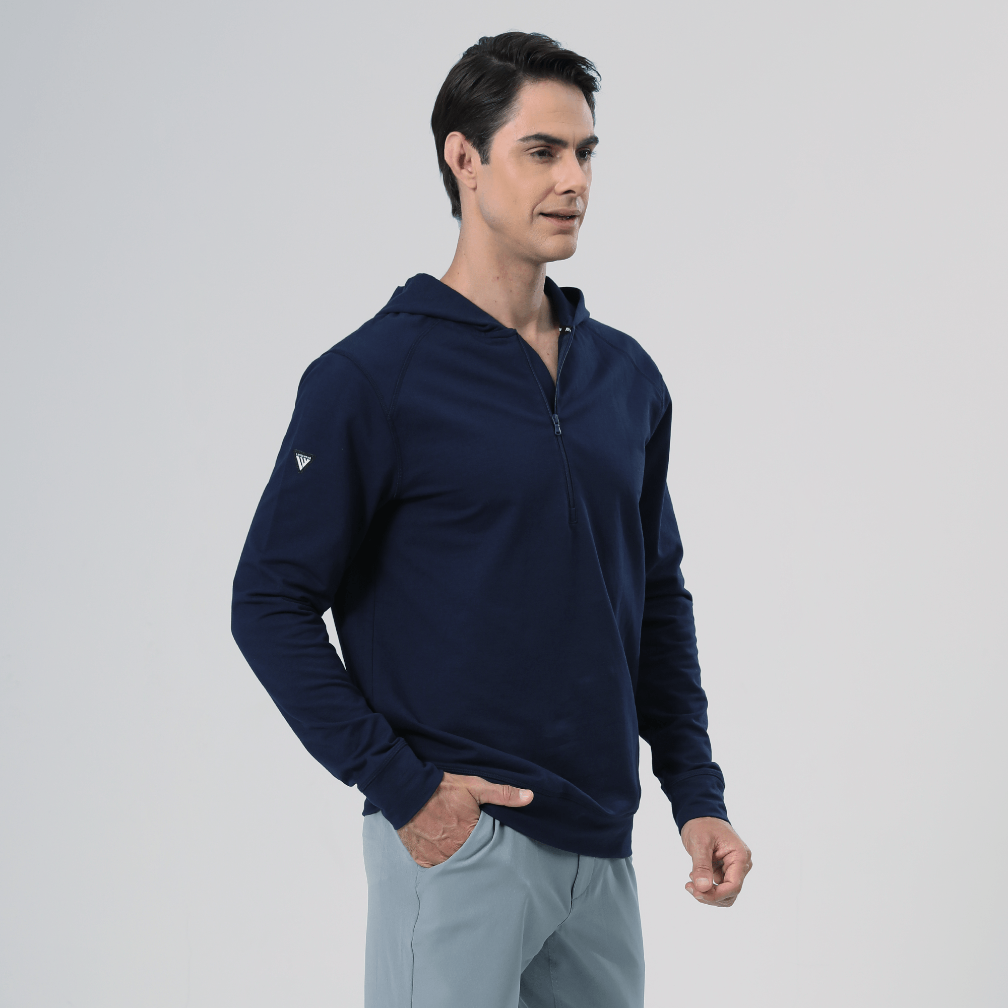 - QUARTER-ZIP WITH ATTACHED HOOD