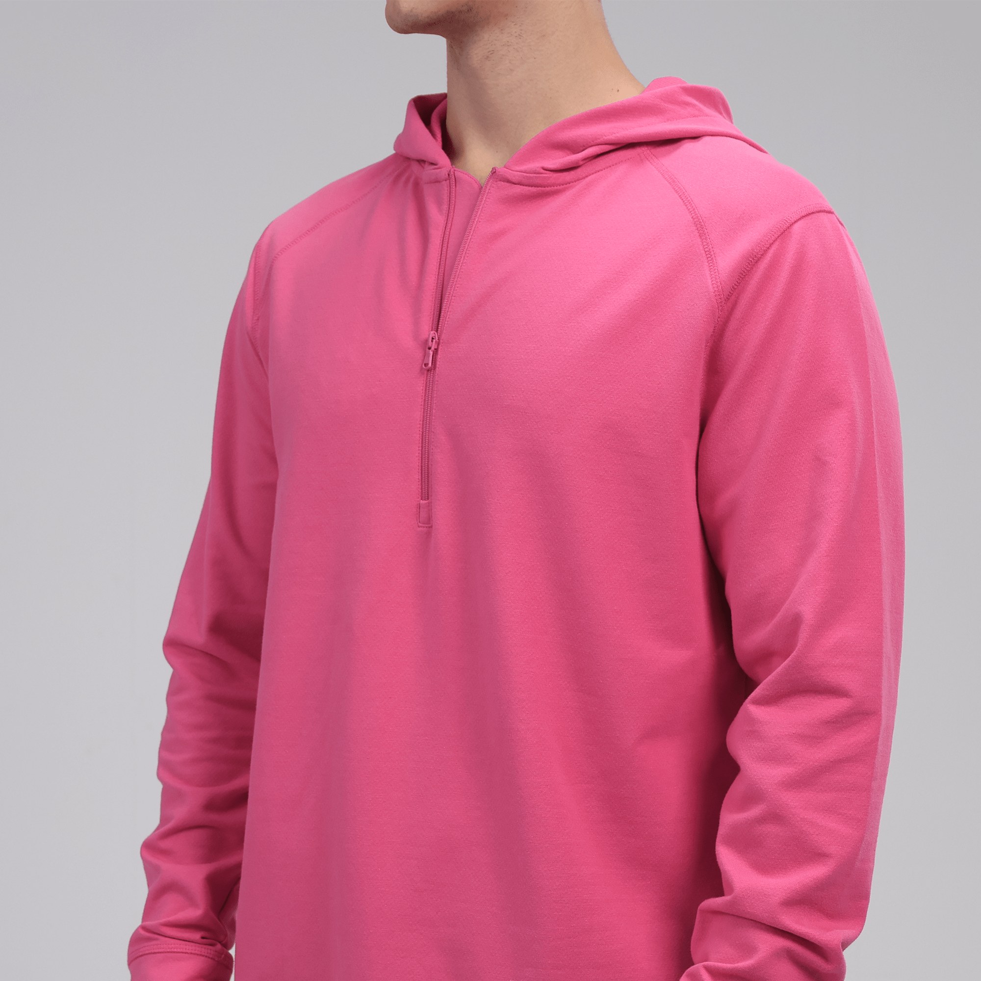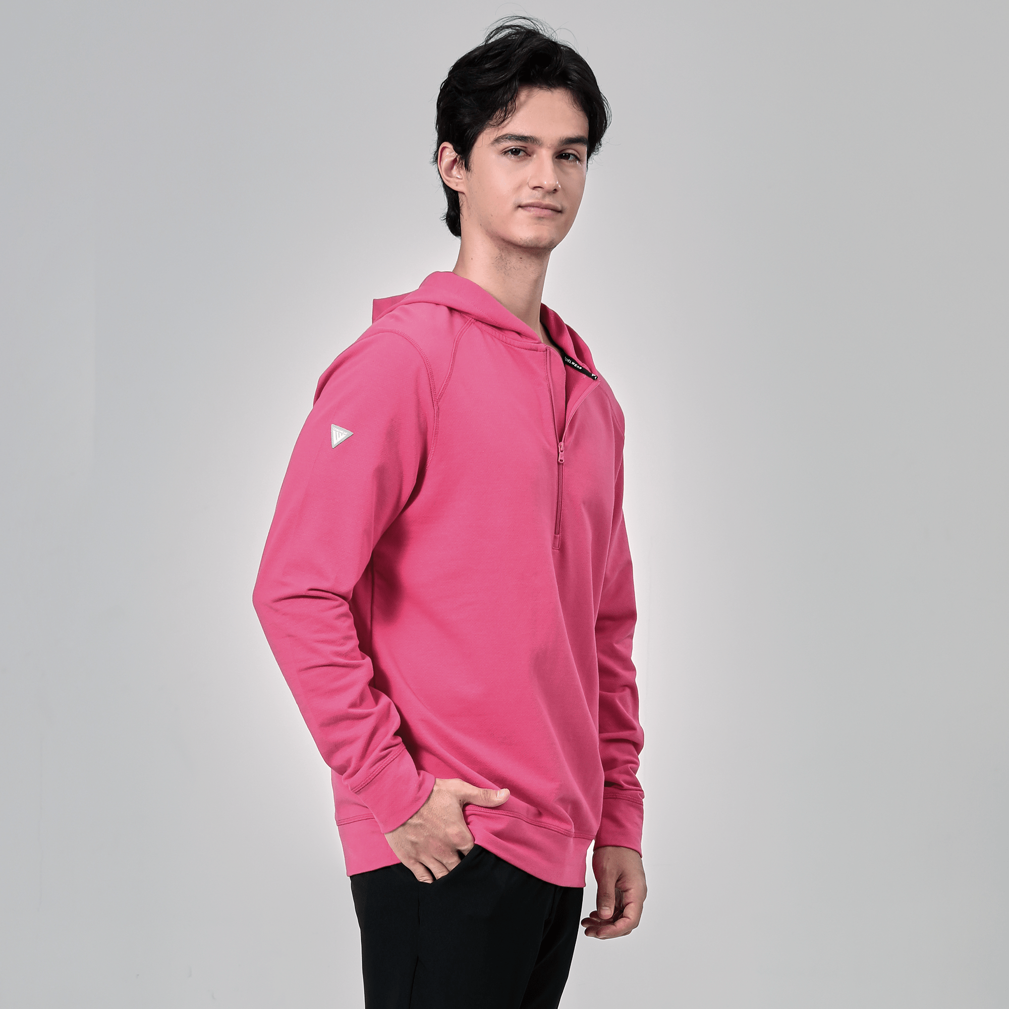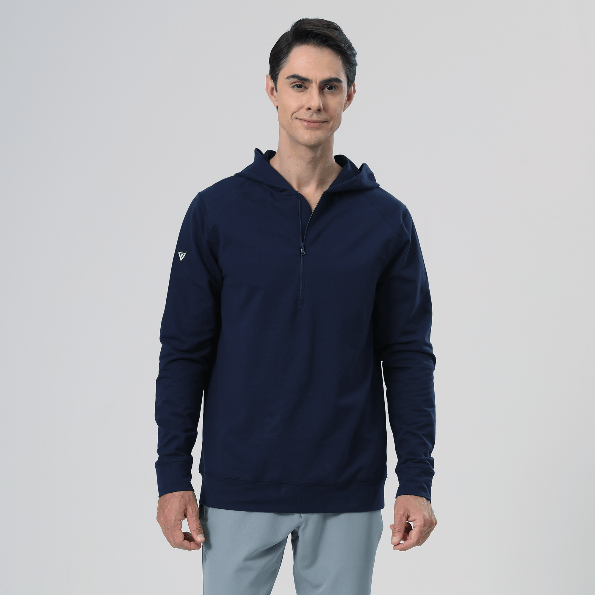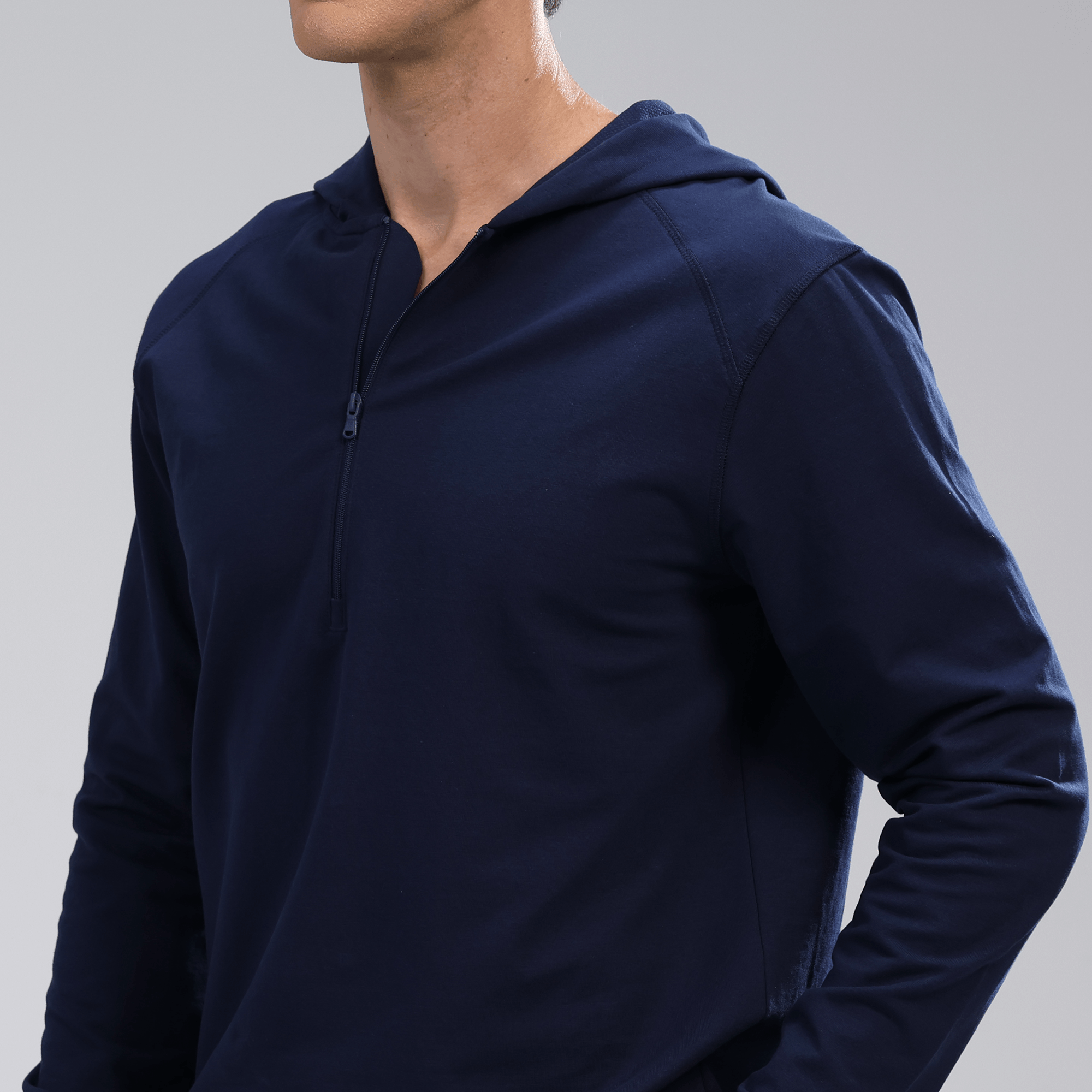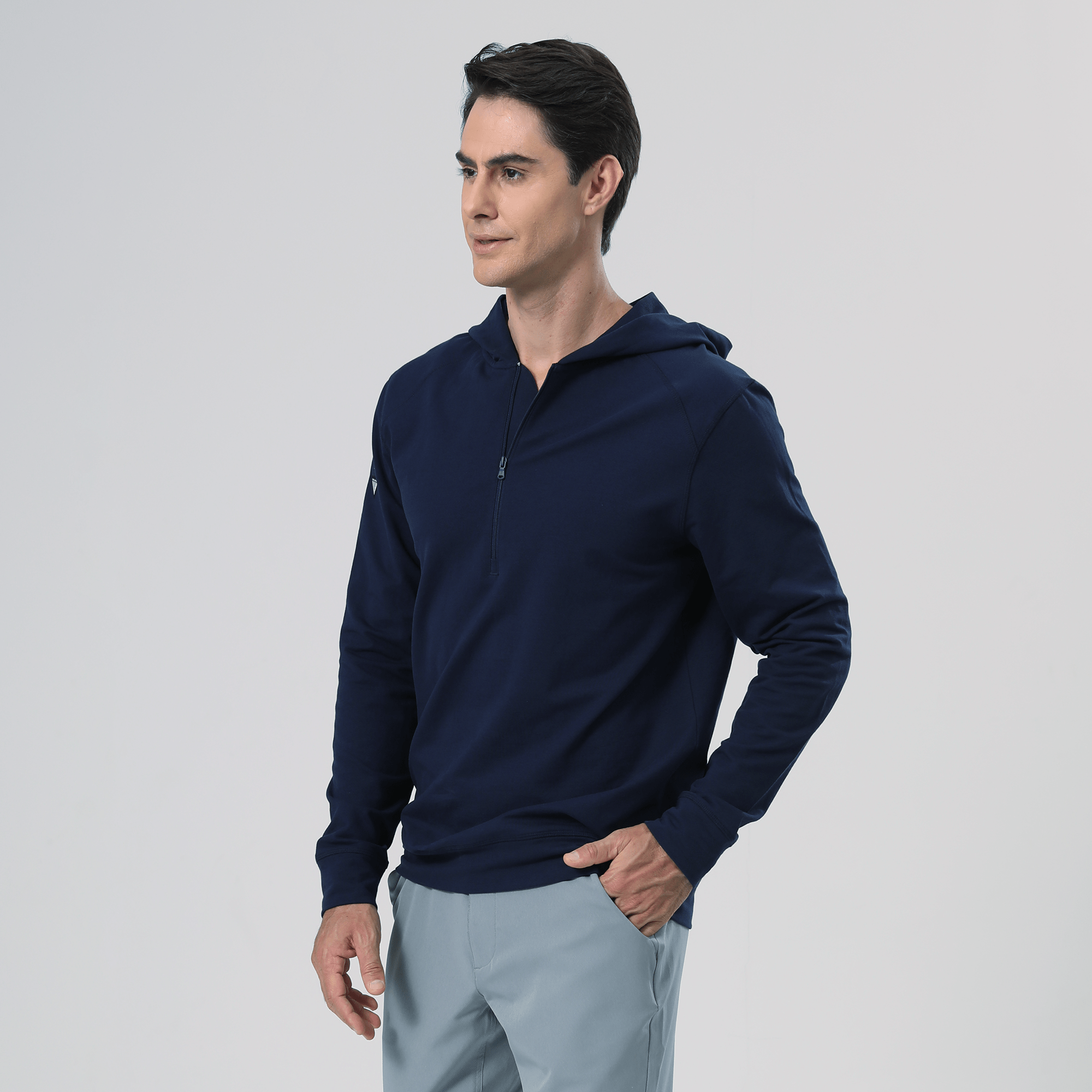 - QUARTER-ZIP WITH ATTACHED HOOD