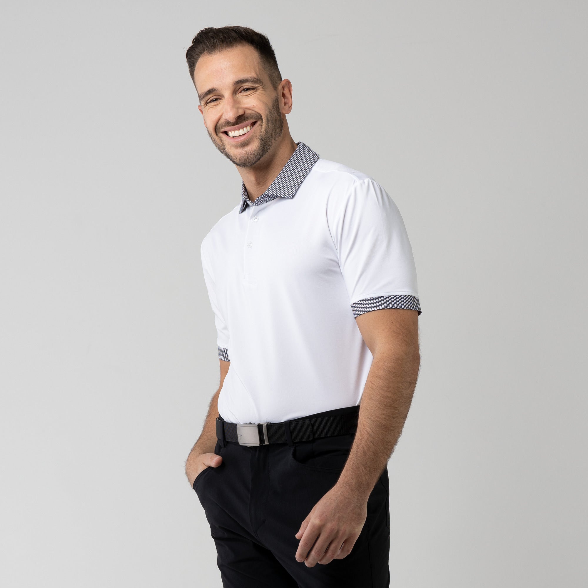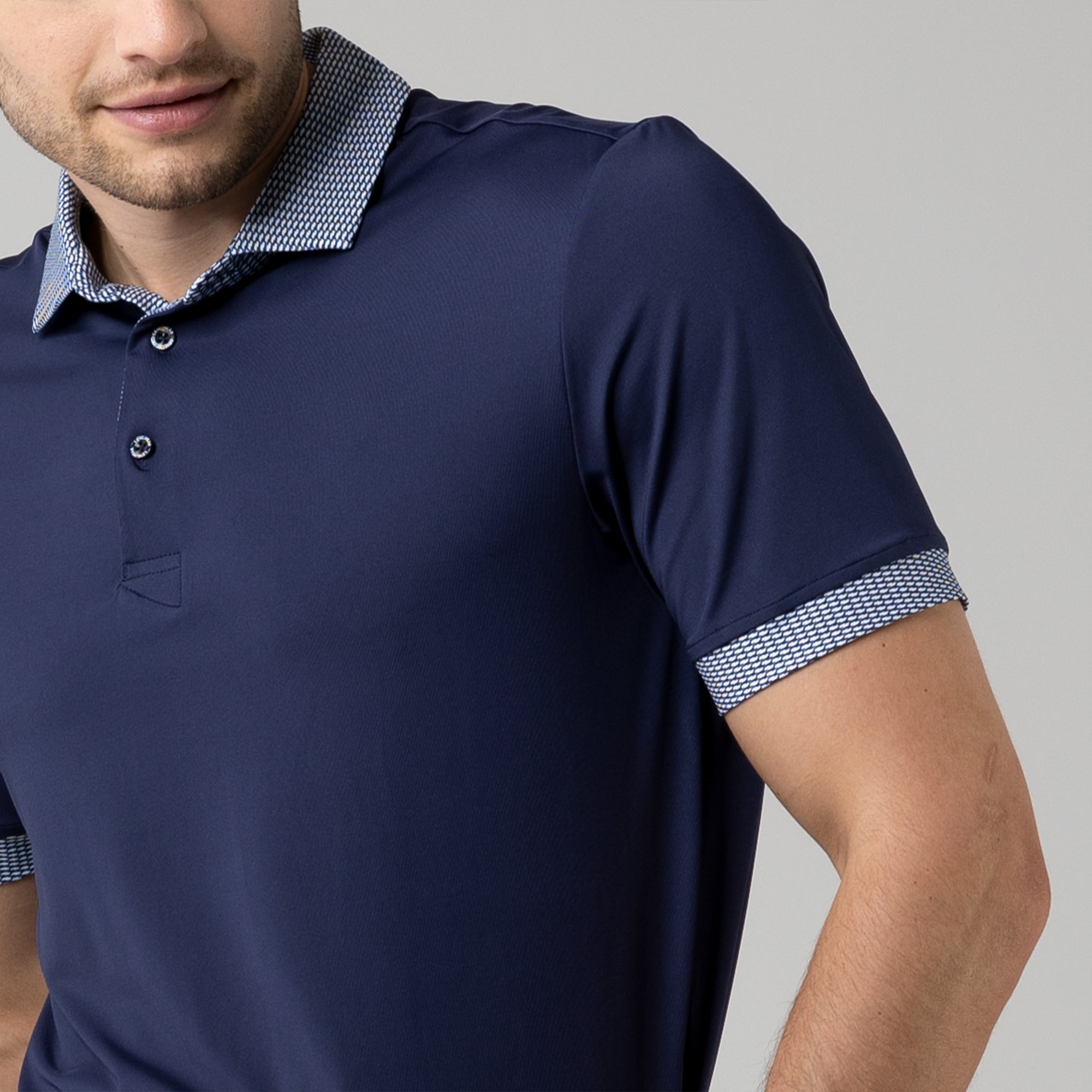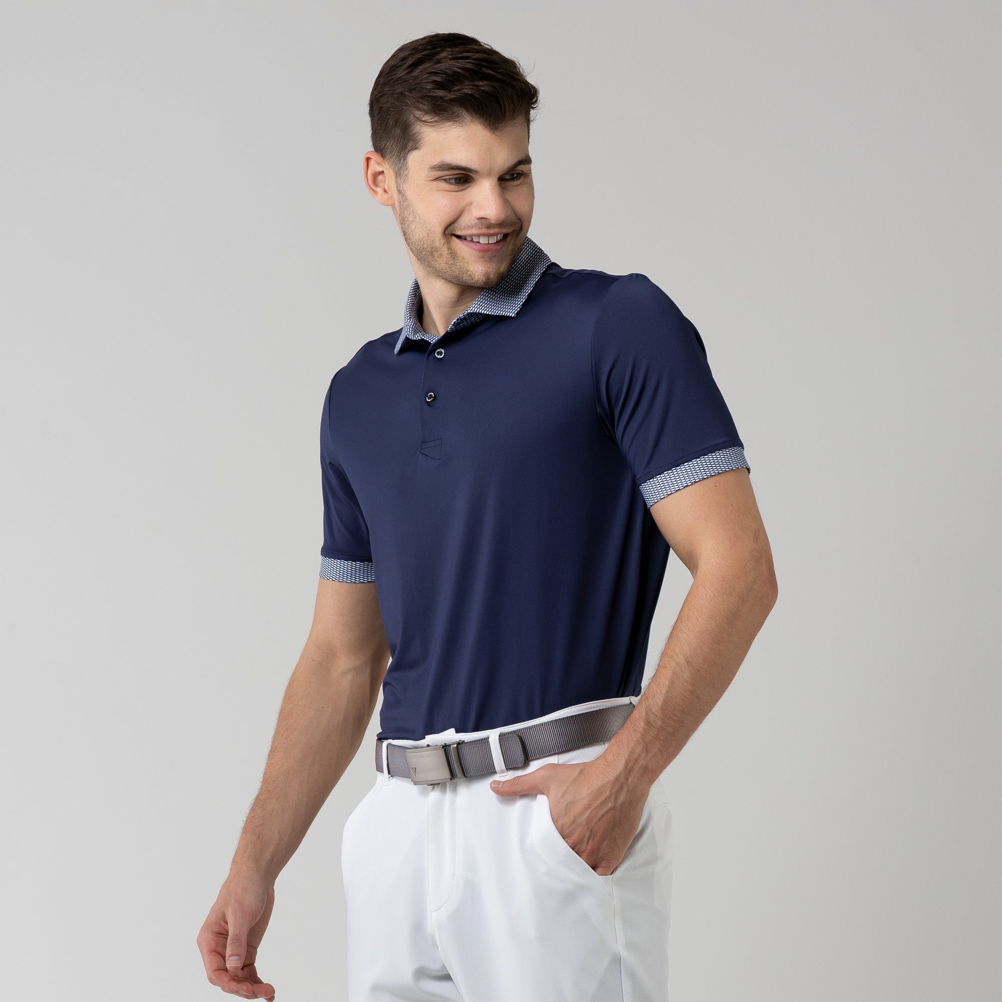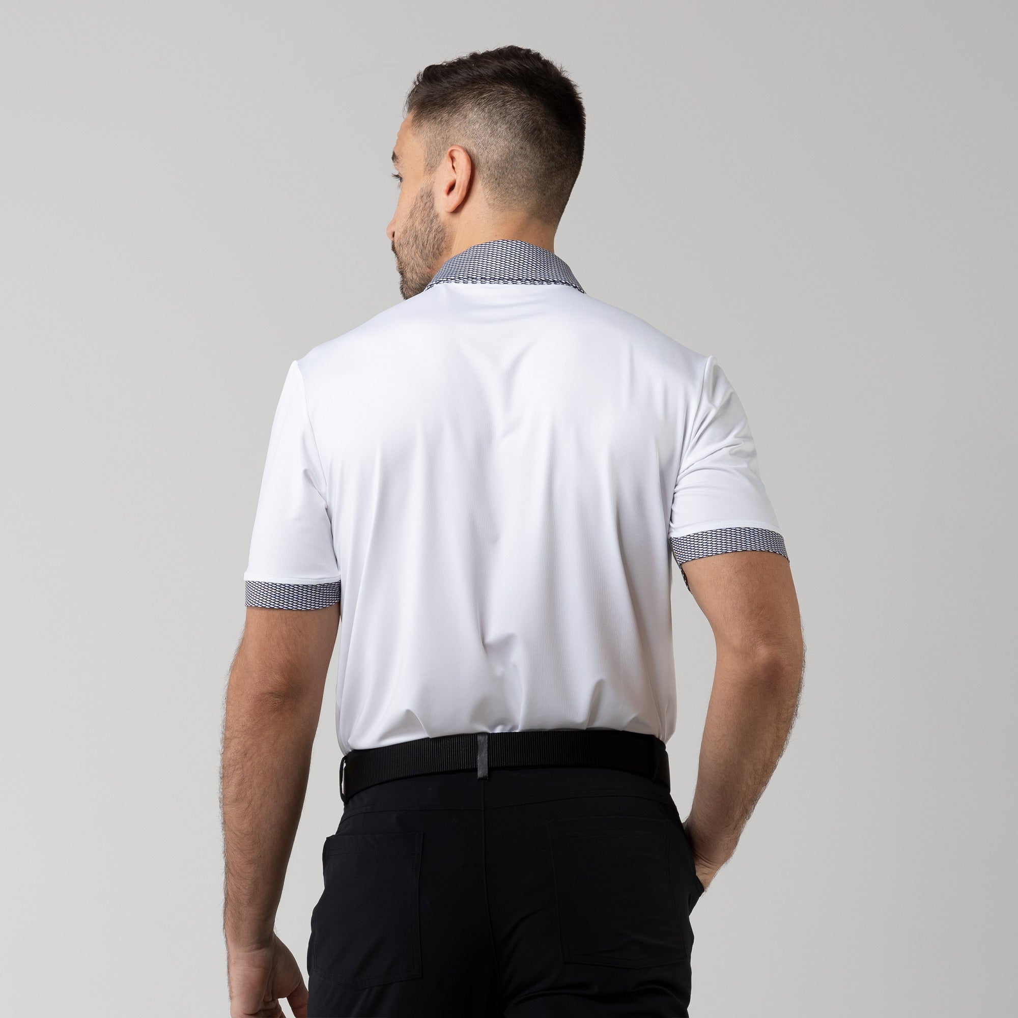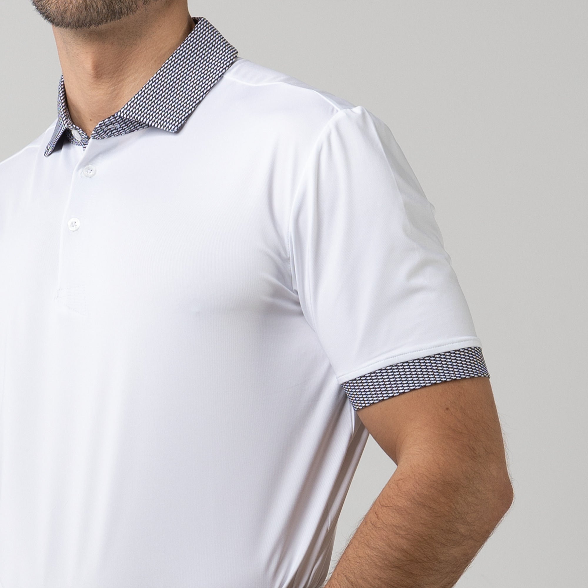 Tee off in comfort and style with the Thomas Polo. A classic design is elevated with printed cuff and collar detailing. This polo is made from lightweight fabric with built-in stretch because we understand that comfort is the key to performing at the top of your game.