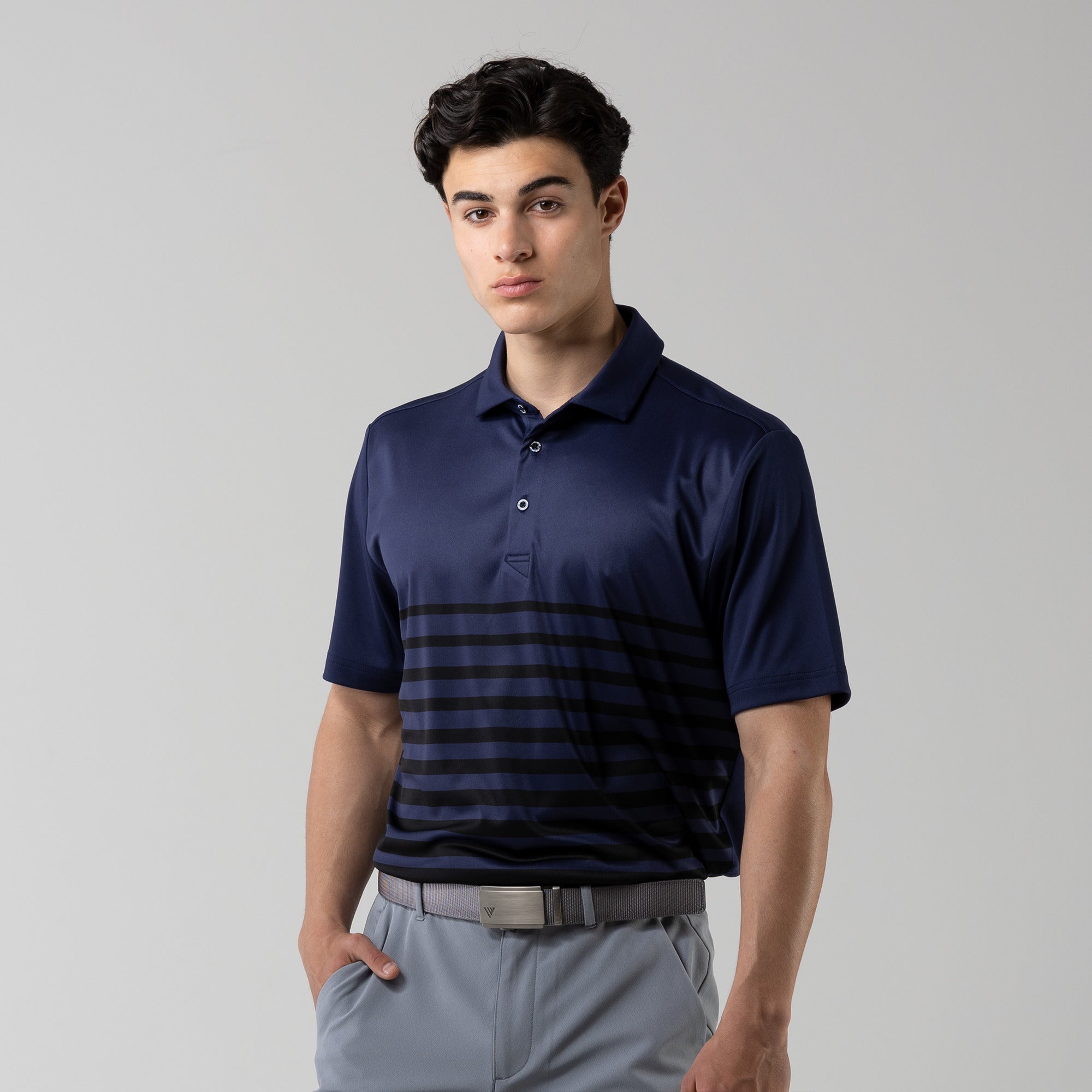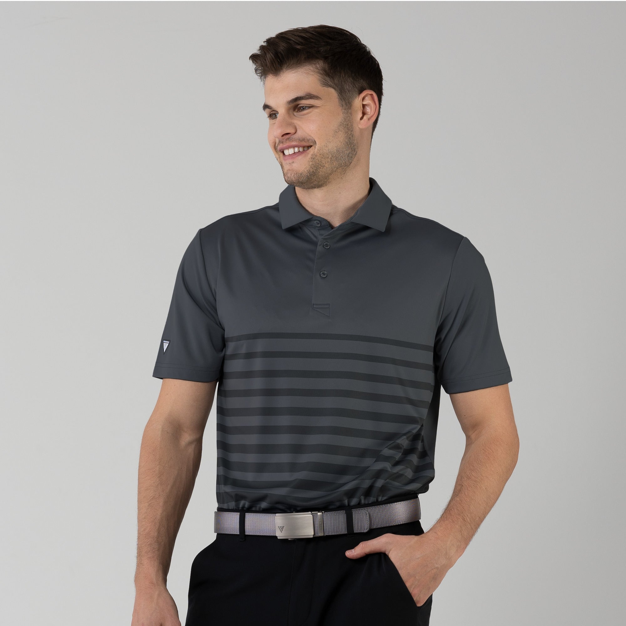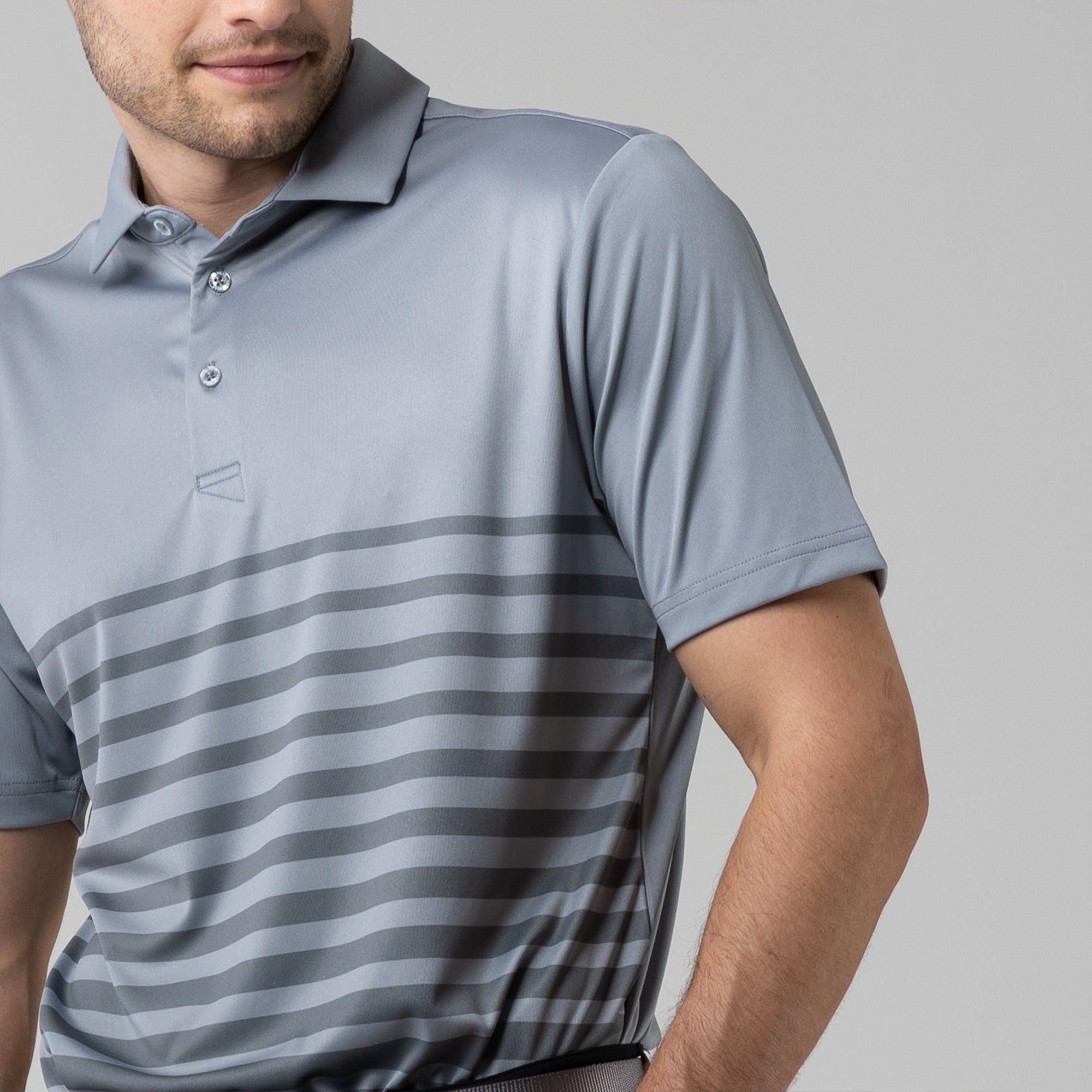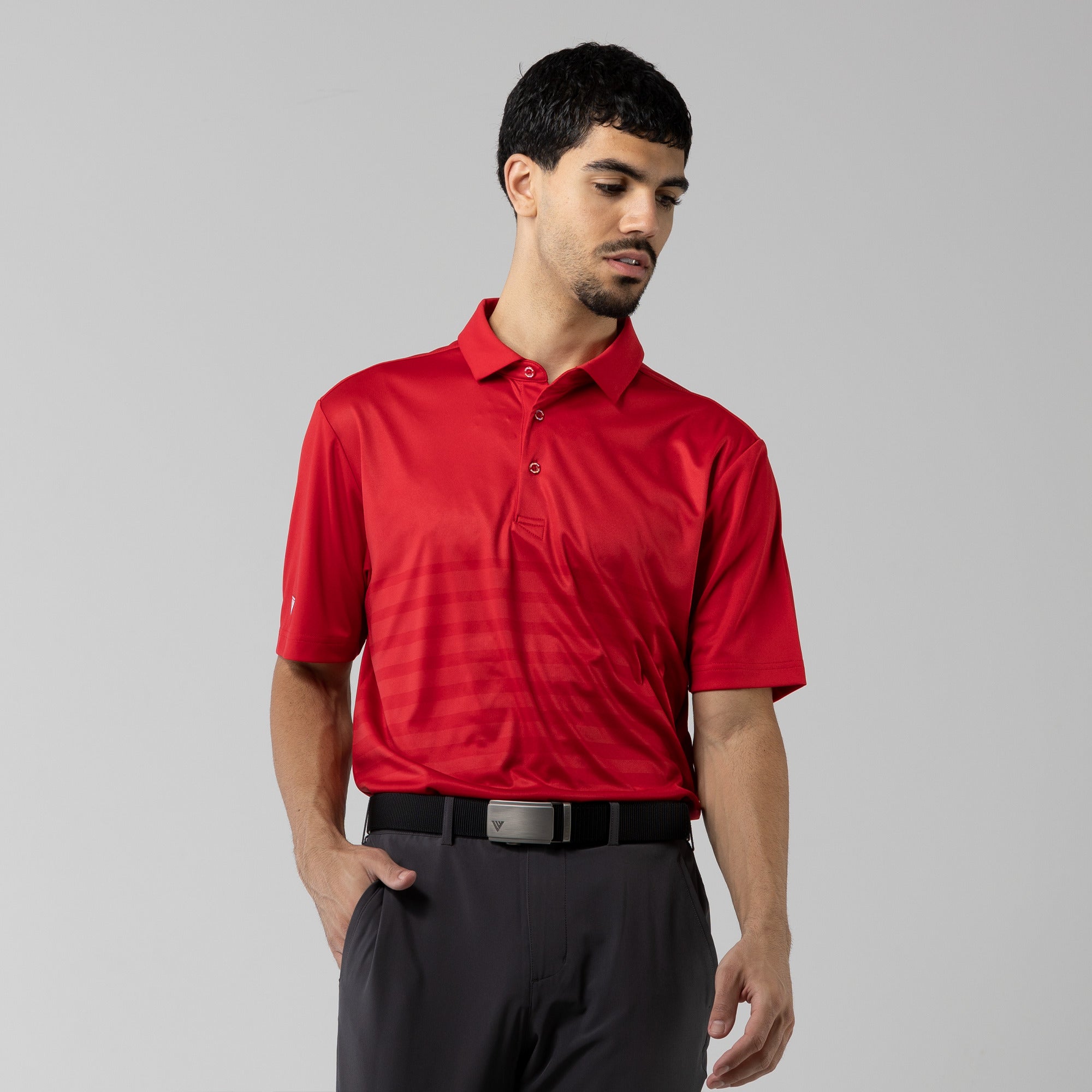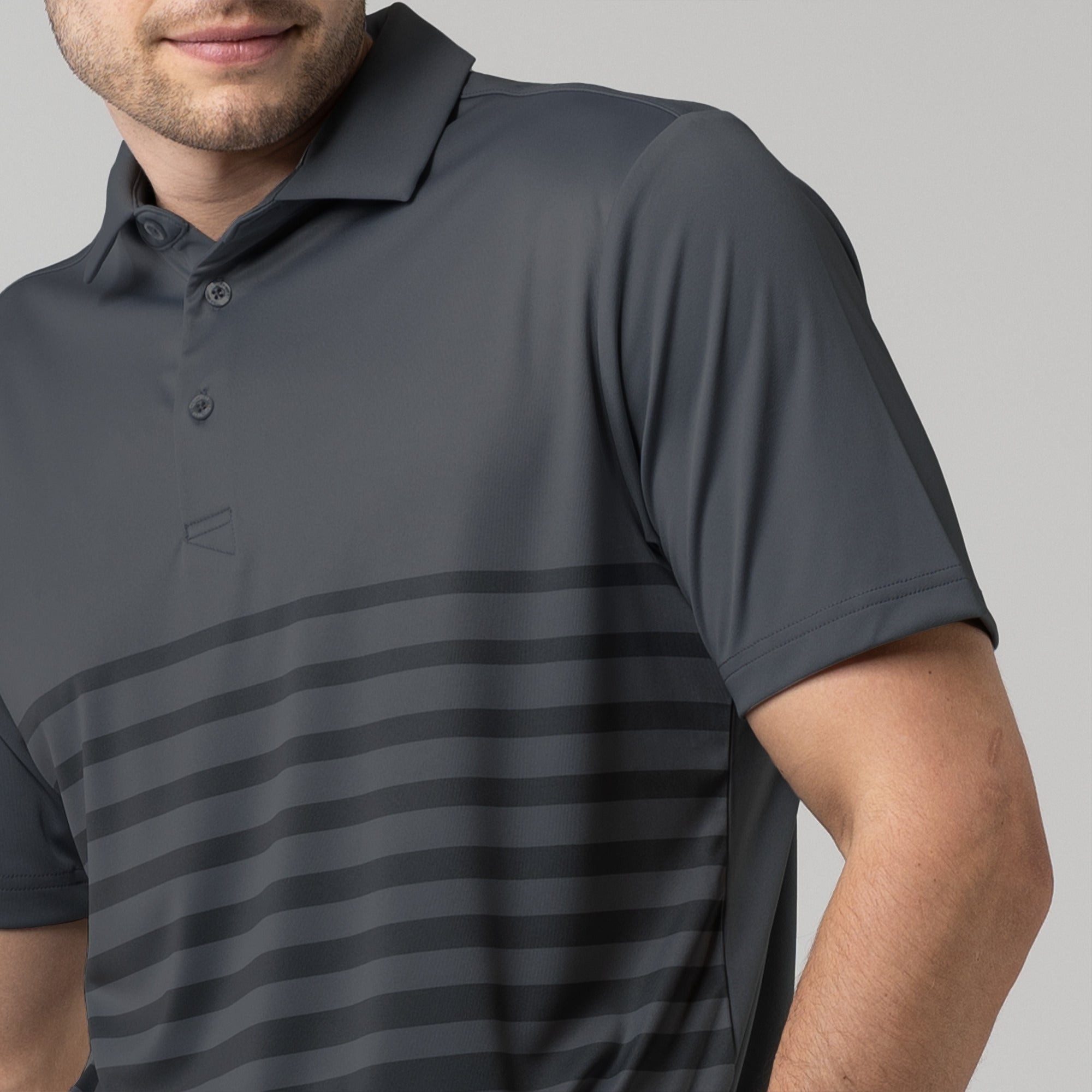 Leave the distractions off the golf course. The Tone Polo ensures you stay focused on your game in unrestrictive, lightweight comfort. Moisture wicking fabric keeps you dry while a modern, allover print helps you look your best.