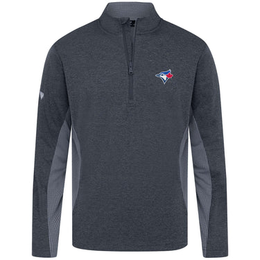 - Quarter-zip with stand-up collar