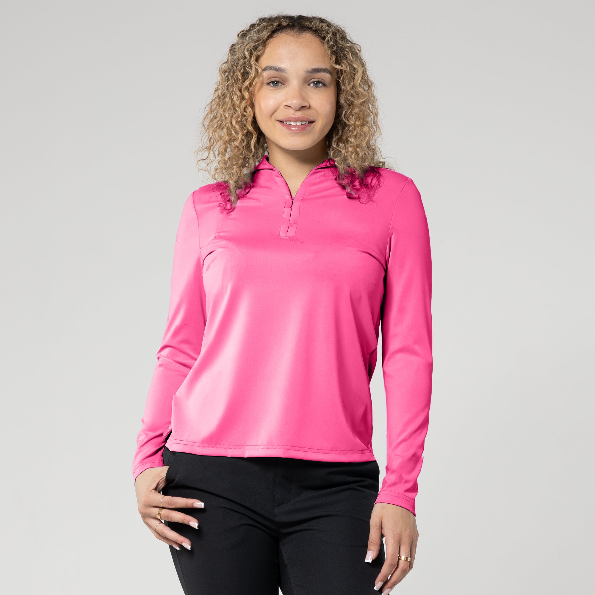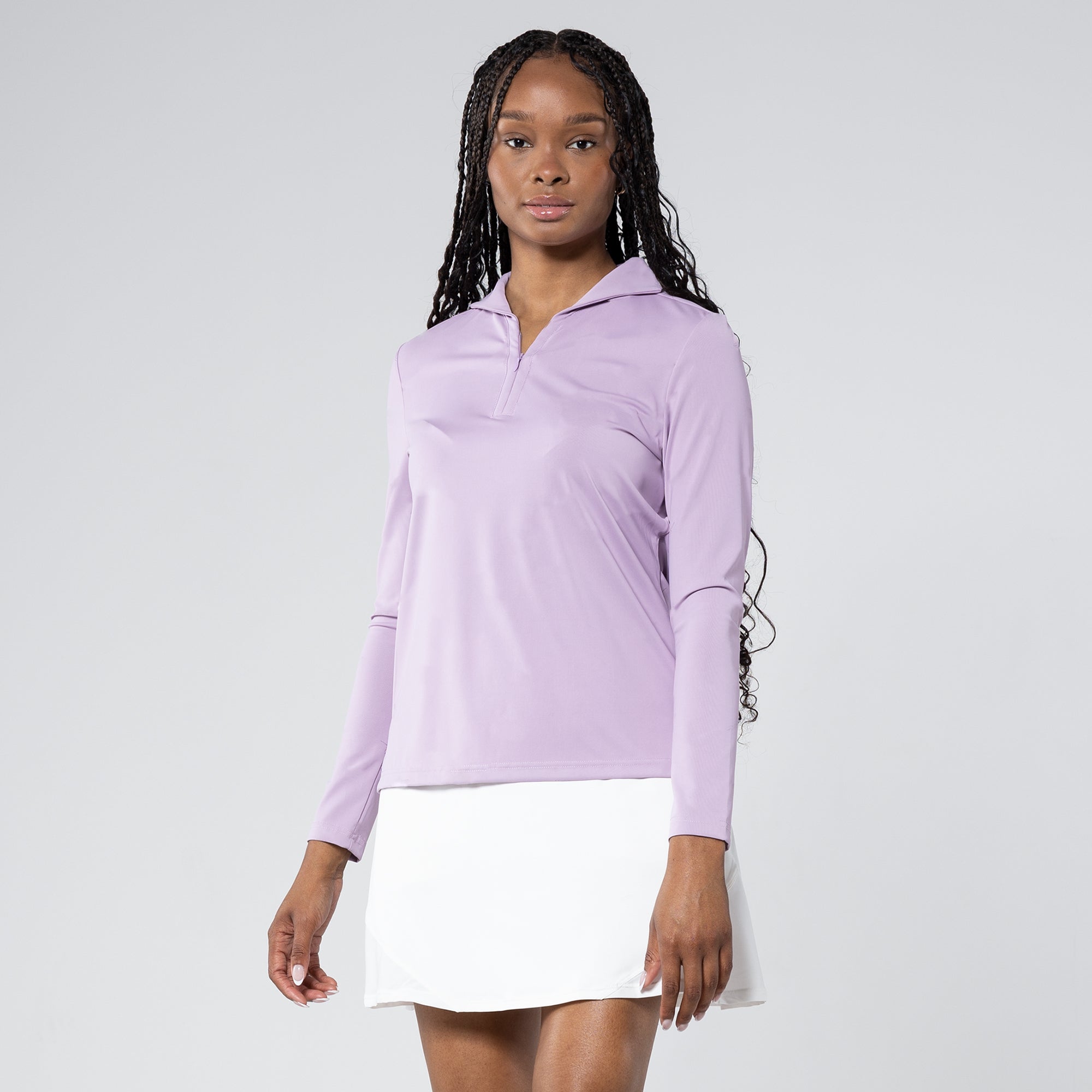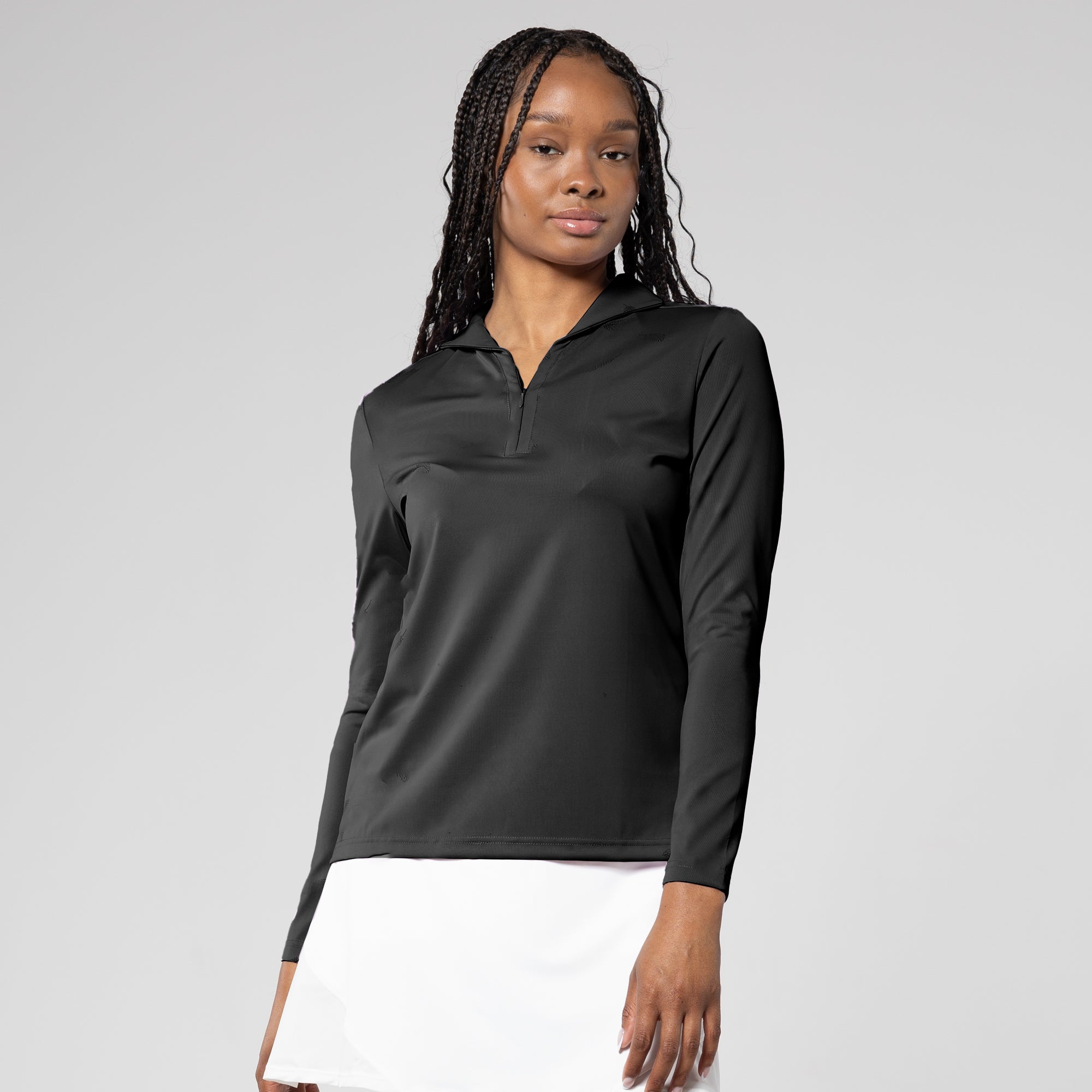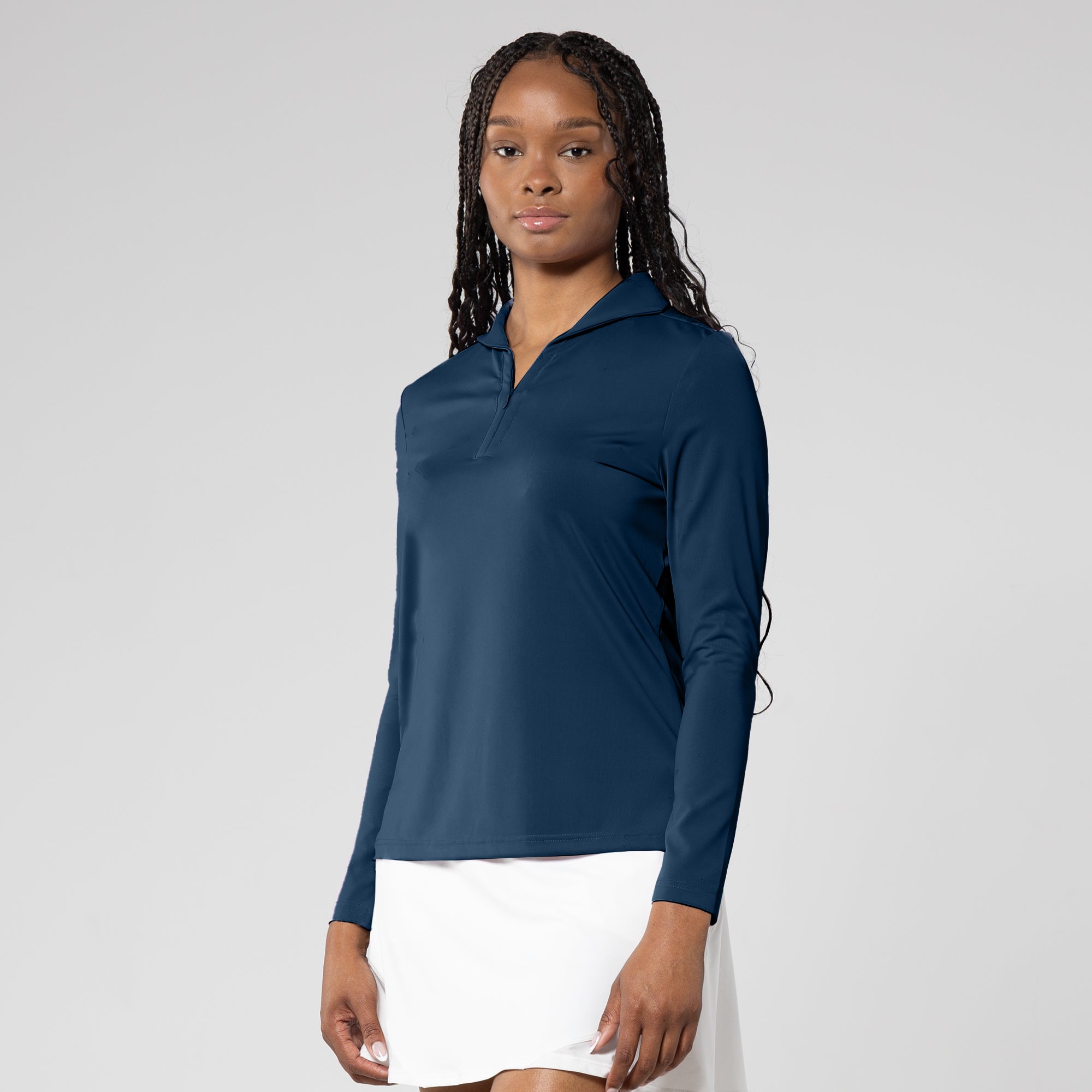 Discover the Treasure long sleeve polo, a chic blend of 68% Nylon and 32% Spandex for comfort. With moisture-wicking tech, it keeps you cool, perfect for any activity. Achieve UPF 50+ sun protection and elevate your style with the unique fashion collar. Embrace comfort and sophistication effortlessly.