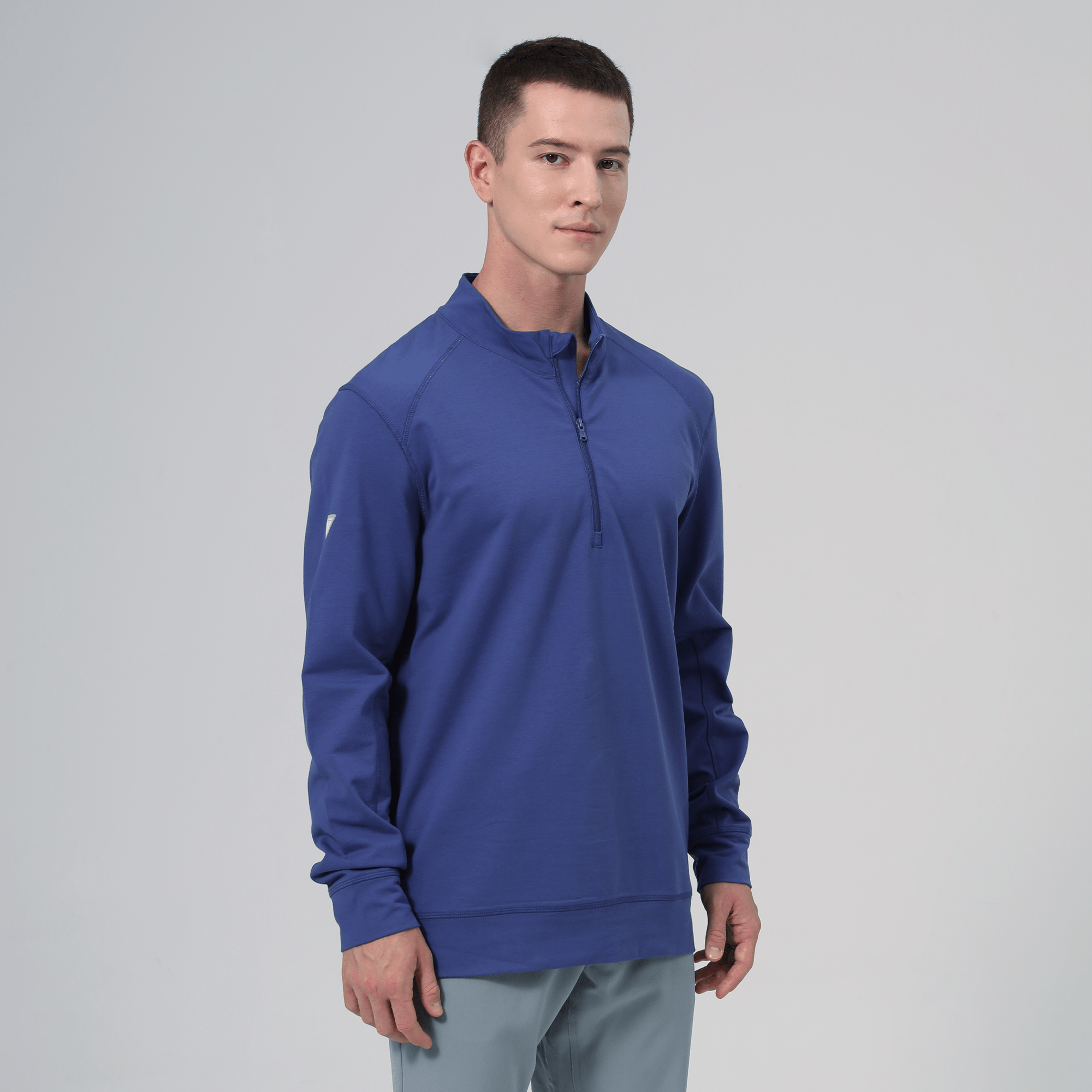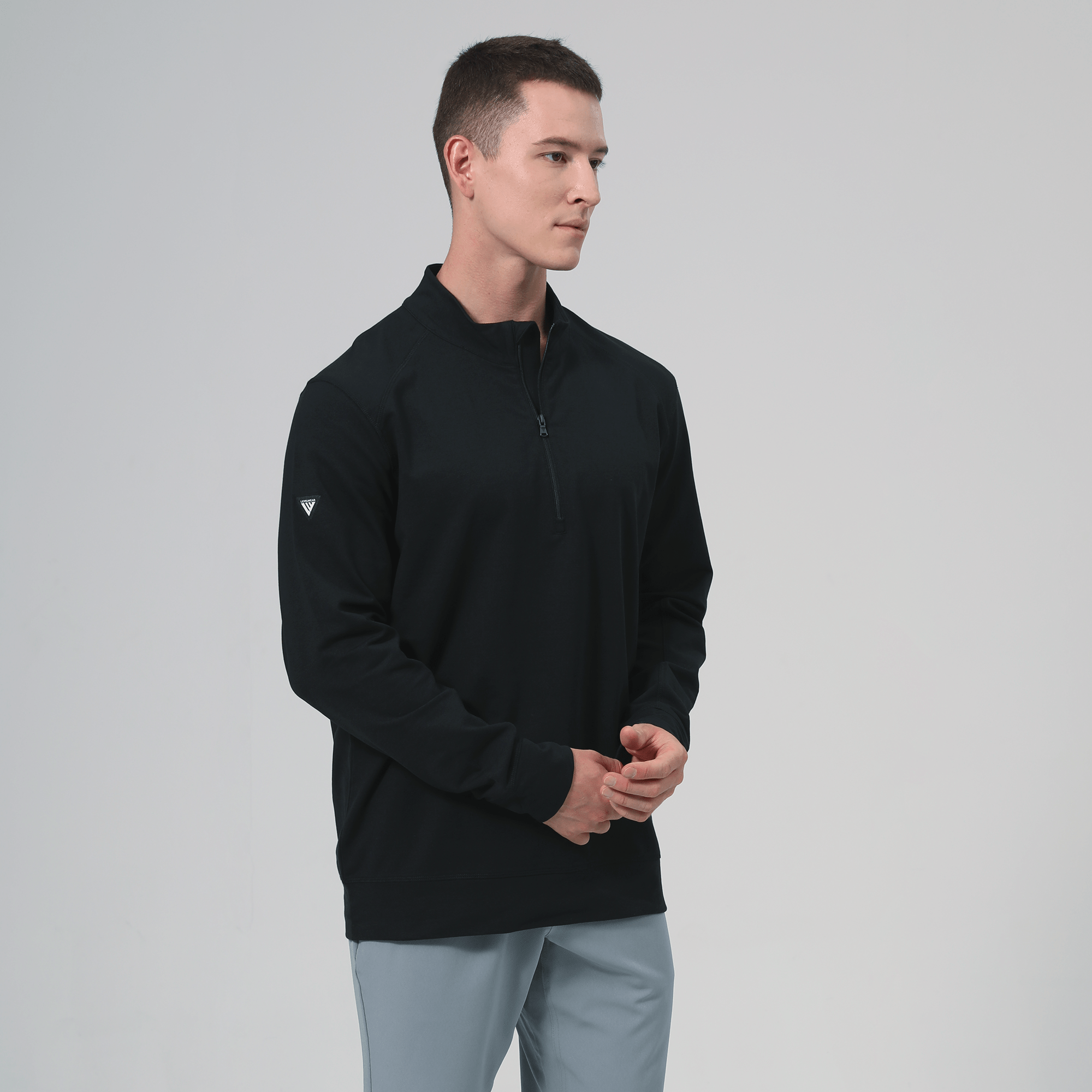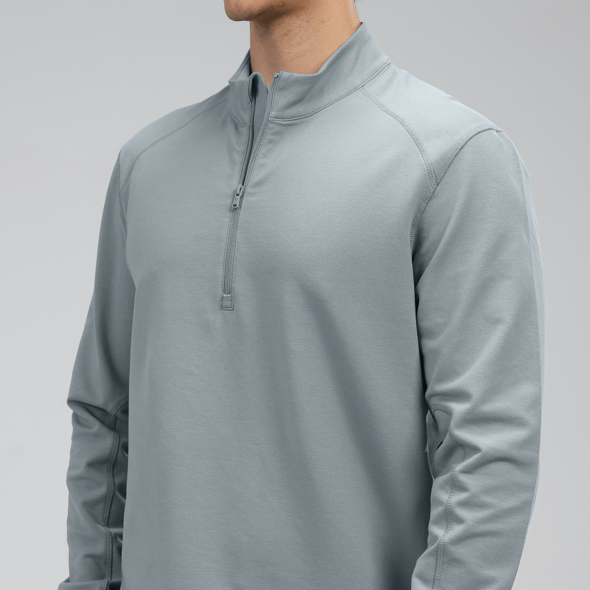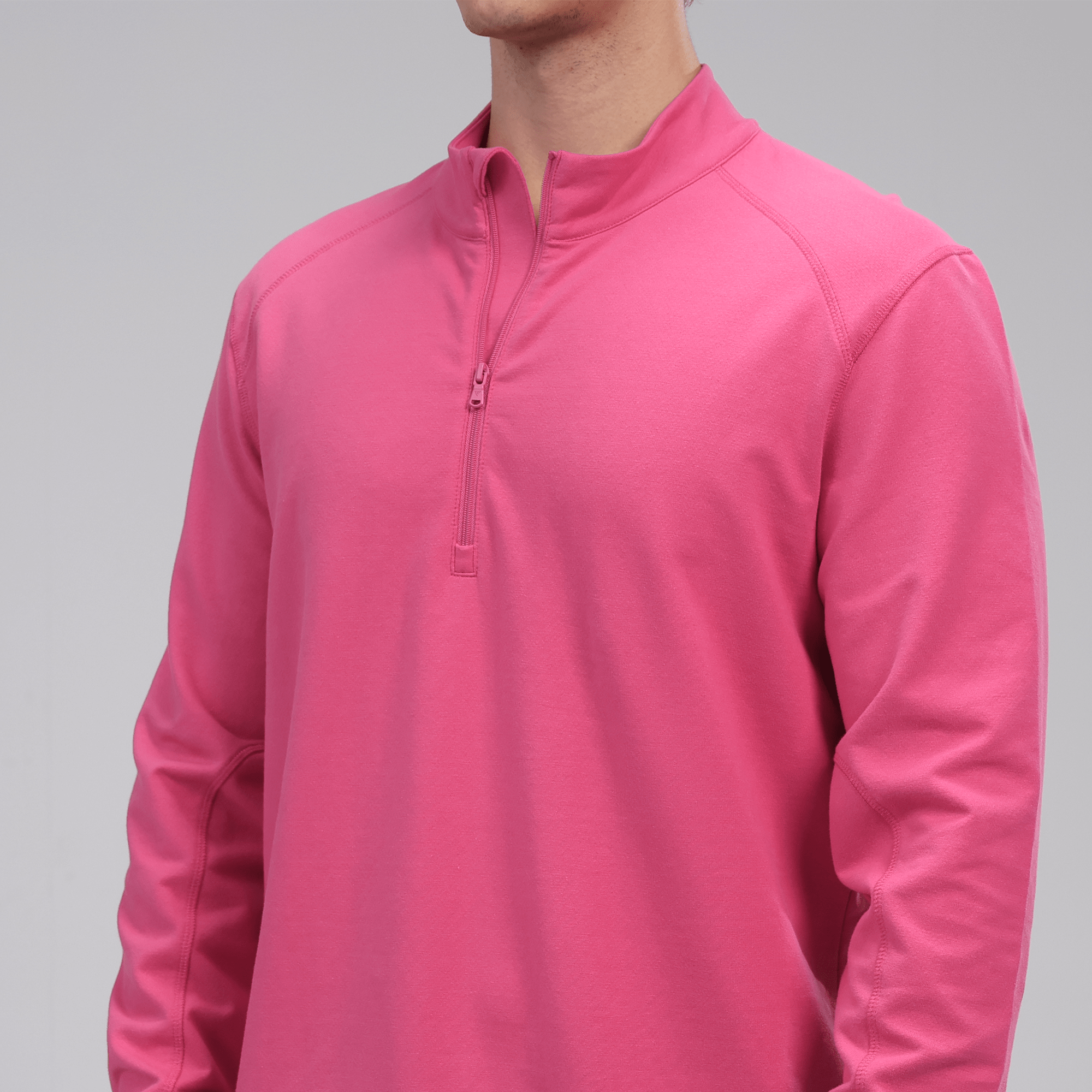 The Upright midlayer is a versatile and comfortable option for layering, designed with performance and style in mind. Featuring a quarter-zip with a stand-up collar, it offers easy adjustability for temperature control, while the flatlock stitching throughout enhances durability and creates a sleek, clean finish. Raglan sleeves provide a full range of motion, making it perfect for active wear, and the ribbed cuffs ensure a snug and comfortable fit. Made from a blend of 70% cotton, 25% polyester, and 5% elastane, this midlayer combines softness, flexibility, and breathability for any occasion, whether you're headed to the golf course or just on the move.