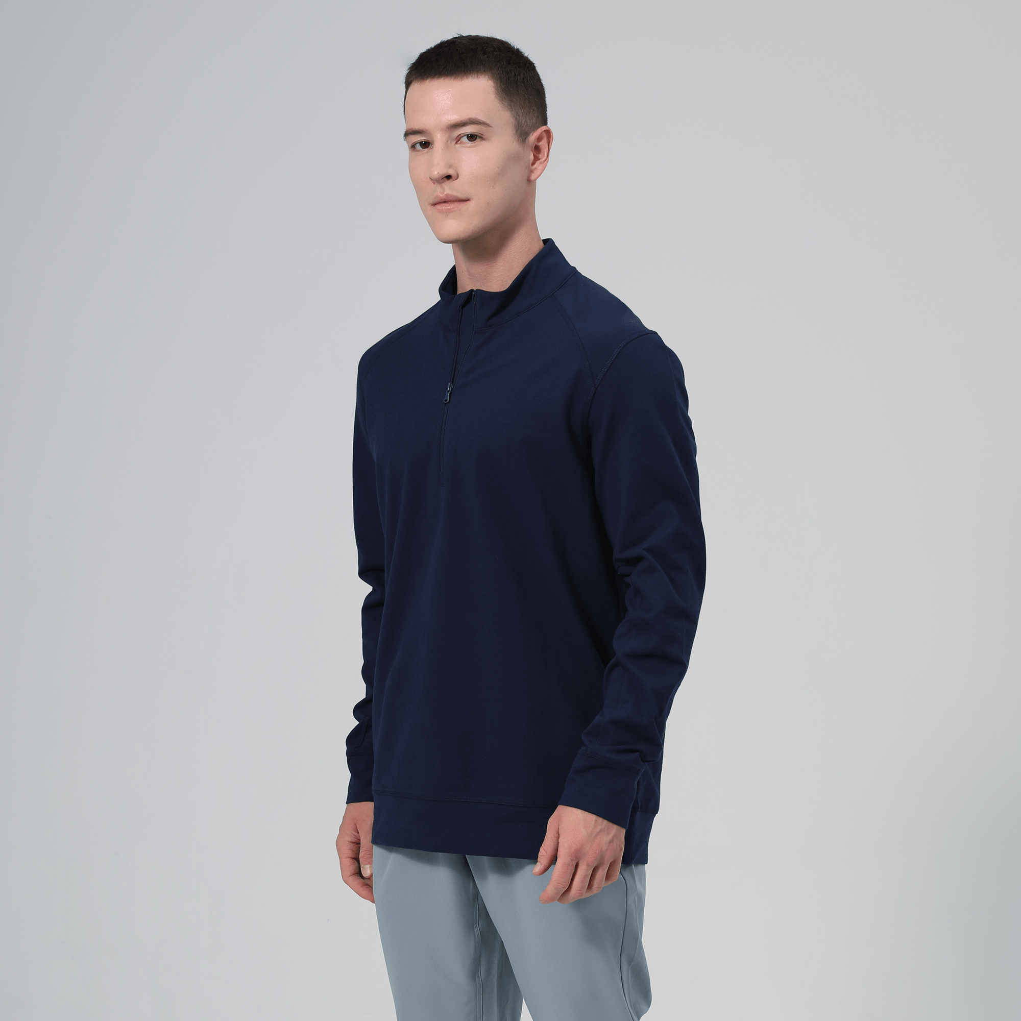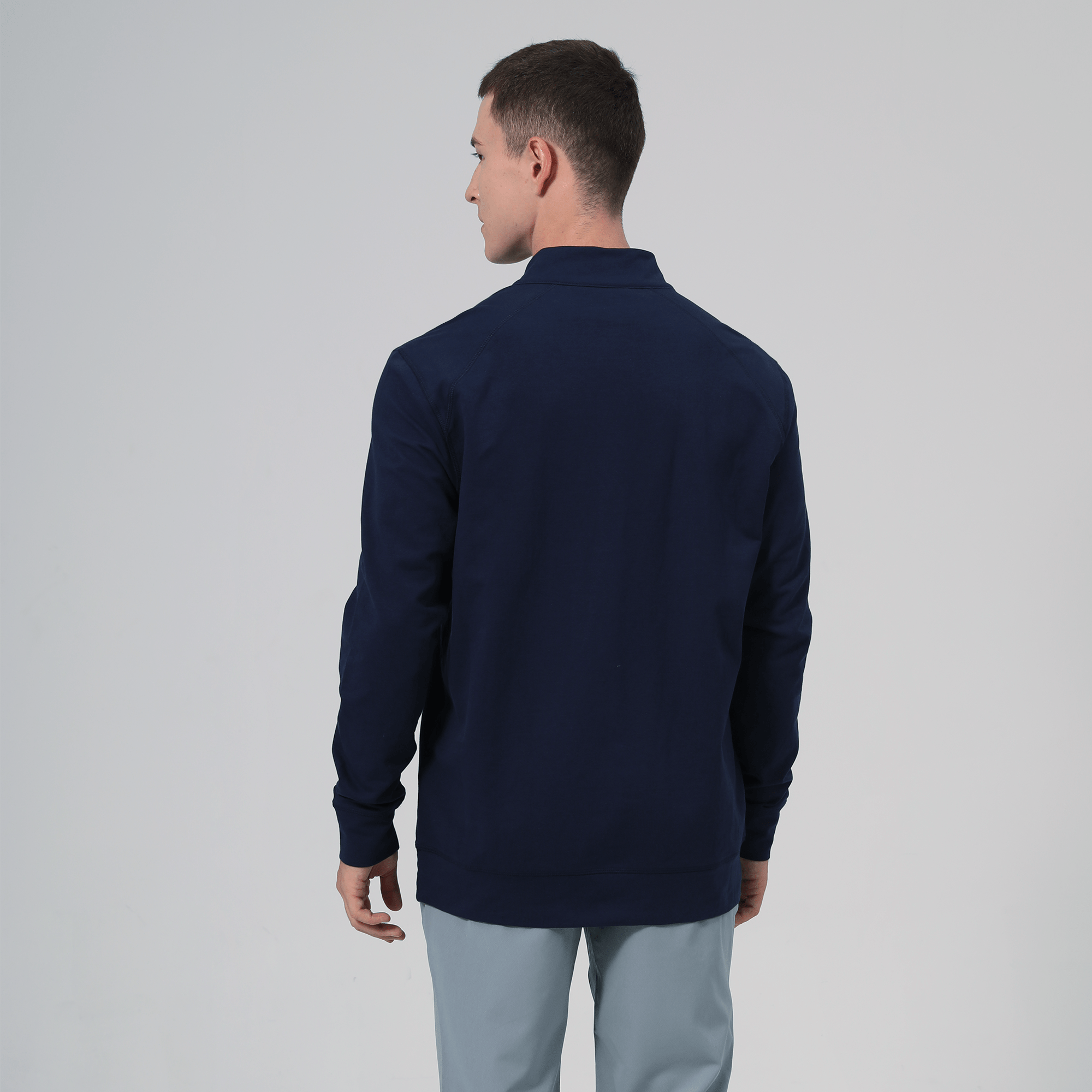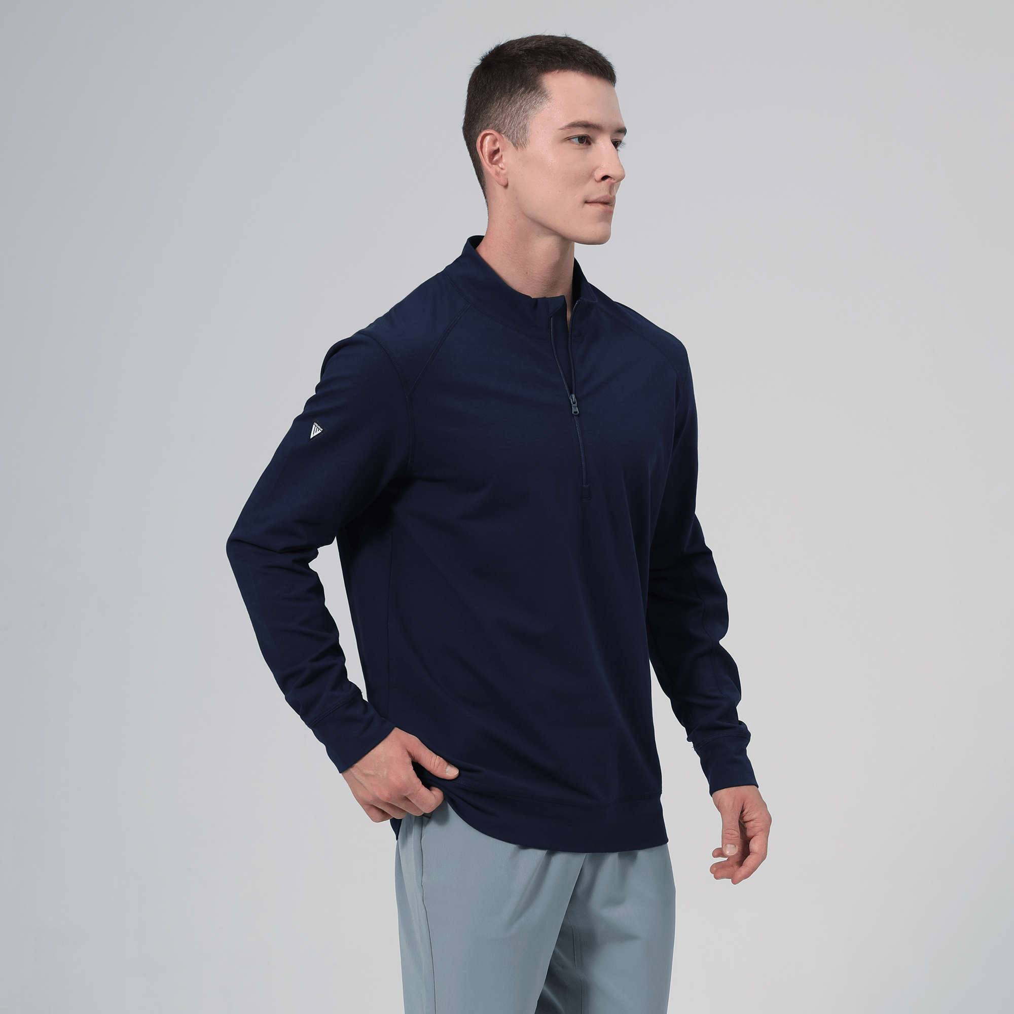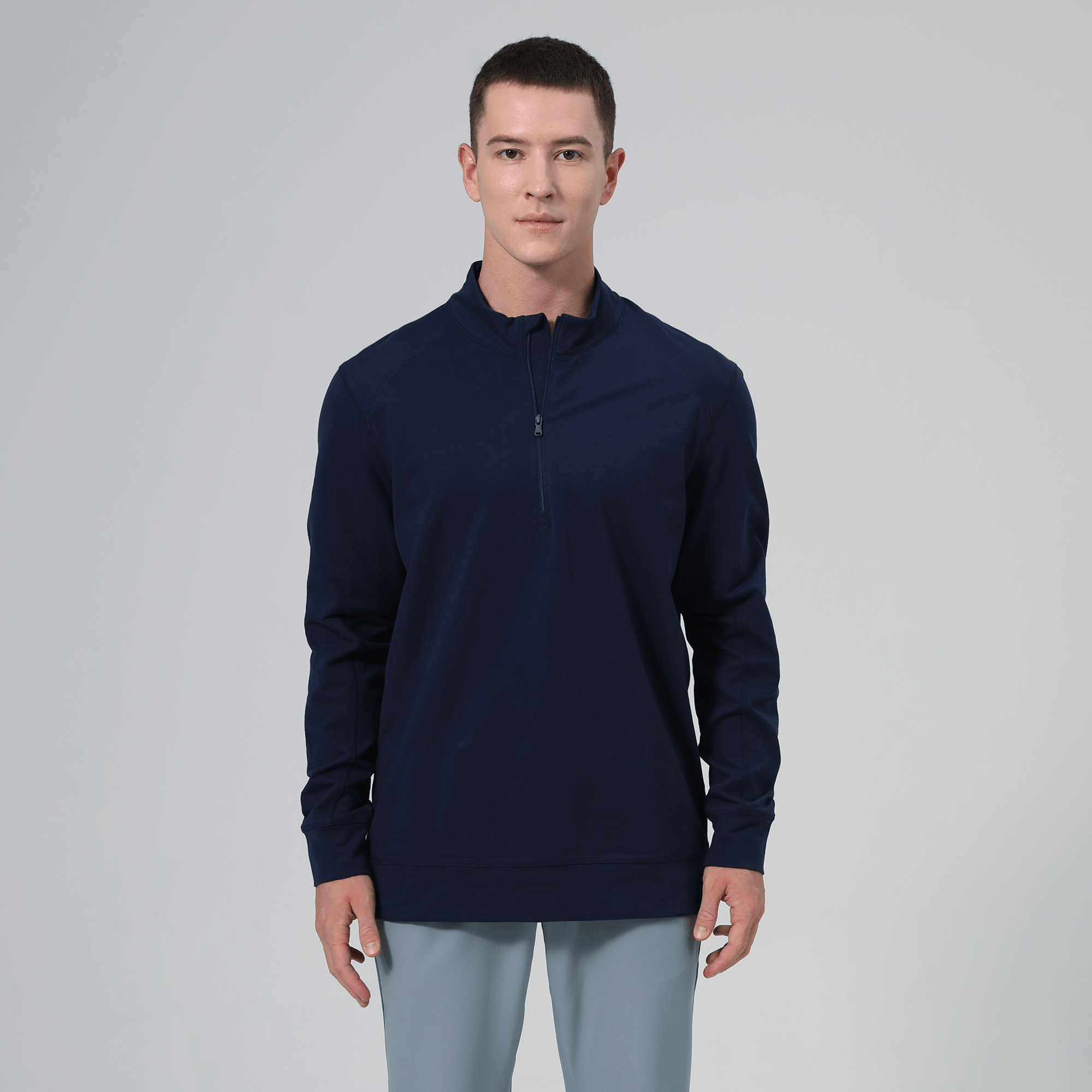 The Upright midlayer is a versatile and comfortable option for layering, designed with performance and style in mind. Featuring a quarter-zip with a stand-up collar, it offers easy adjustability for temperature control, while the flatlock stitching throughout enhances durability and creates a sleek, clean finish. Raglan sleeves provide a full range of motion, making it perfect for active wear, and the ribbed cuffs ensure a snug and comfortable fit. Made from a blend of 70% cotton, 25% polyester, and 5% elastane, this midlayer combines softness, flexibility, and breathability for any occasion, whether you're headed to the golf course or just on the move.