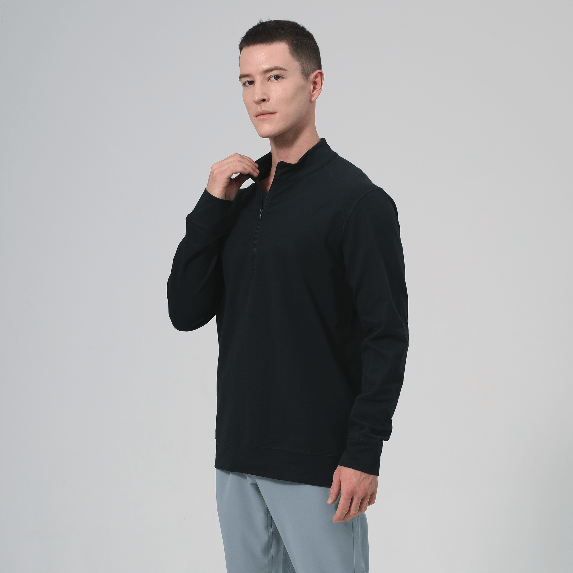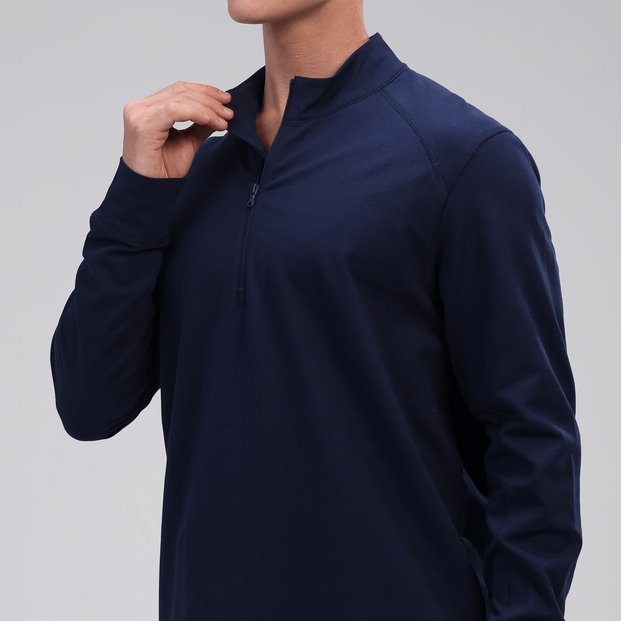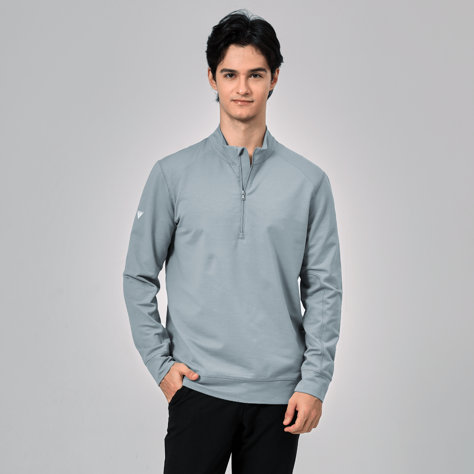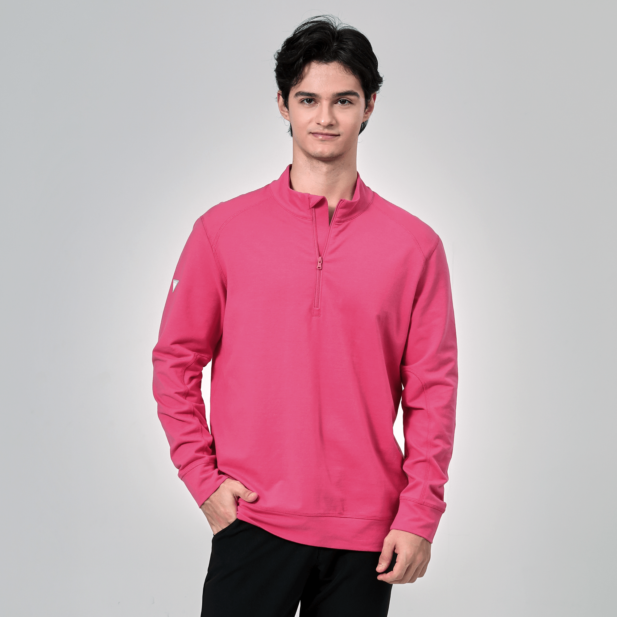 The Upright midlayer is a versatile and comfortable option for layering, designed with performance and style in mind. Featuring a quarter-zip with a stand-up collar, it offers easy adjustability for temperature control, while the flatlock stitching throughout enhances durability and creates a sleek, clean finish. Raglan sleeves provide a full range of motion, making it perfect for active wear, and the ribbed cuffs ensure a snug and comfortable fit. Made from a blend of 70% cotton, 25% polyester, and 5% elastane, this midlayer combines softness, flexibility, and breathability for any occasion, whether you're headed to the golf course or just on the move.