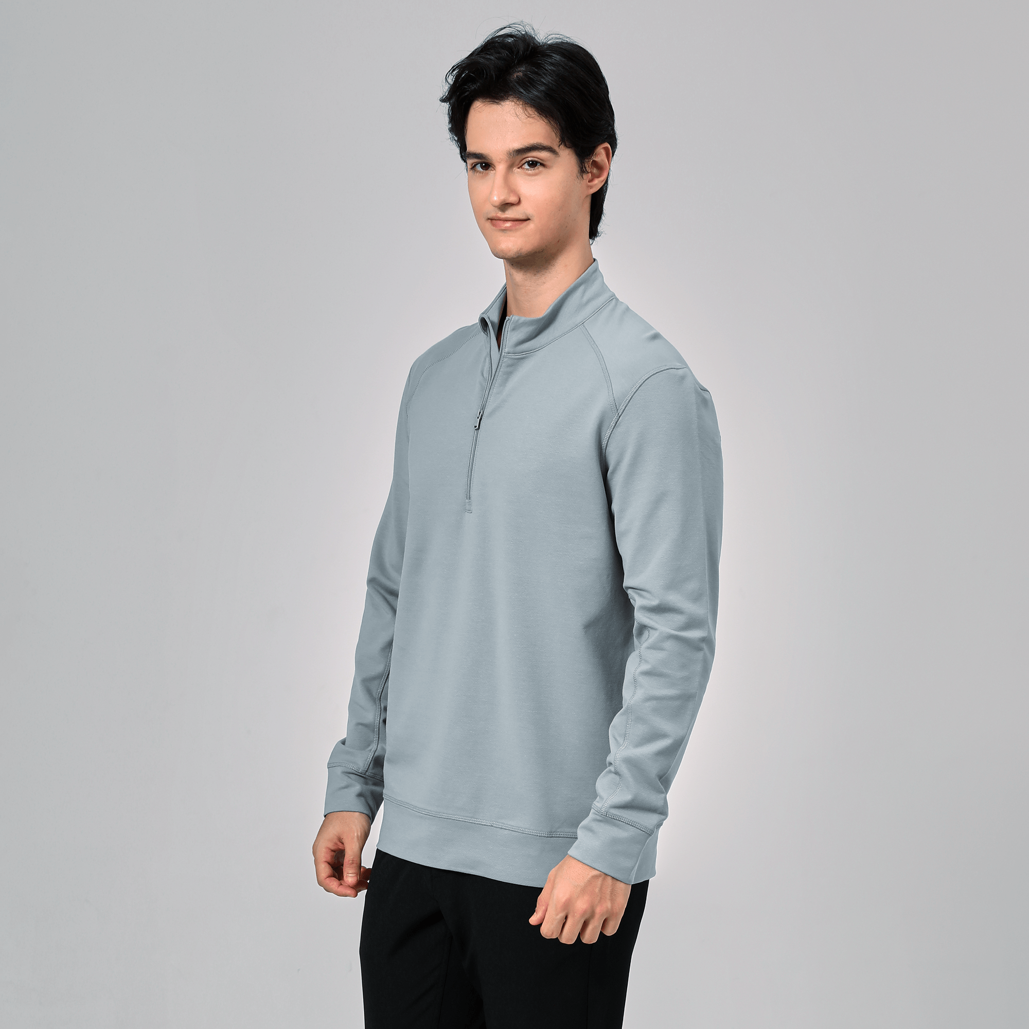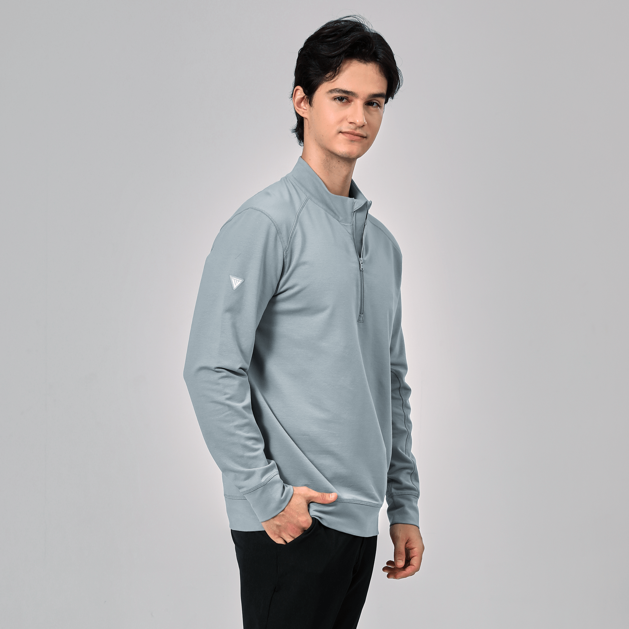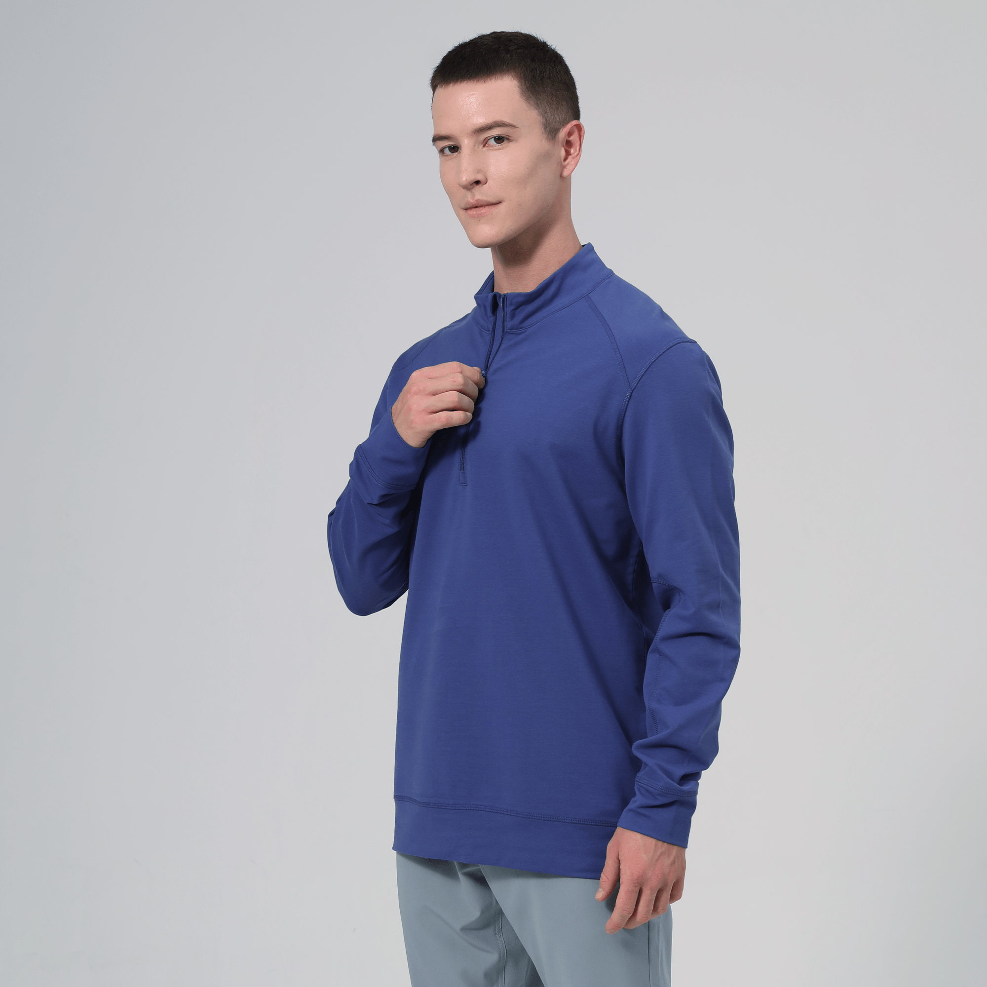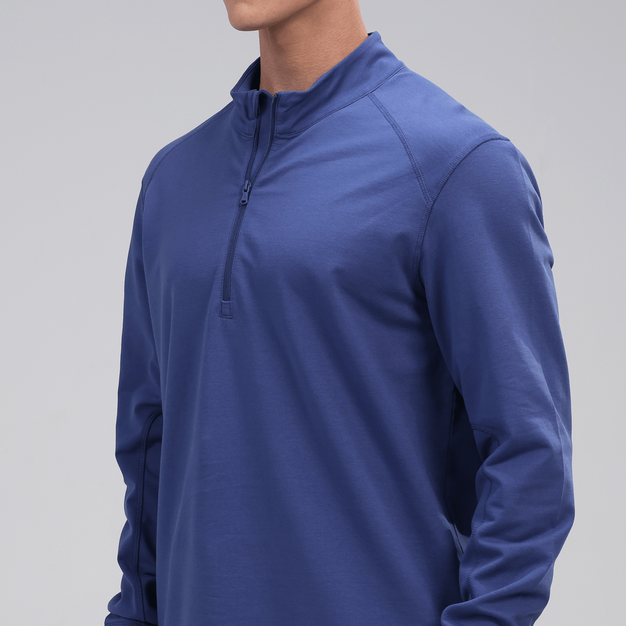 The Upright midlayer is a versatile and comfortable option for layering, designed with performance and style in mind. Featuring a quarter-zip with a stand-up collar, it offers easy adjustability for temperature control, while the flatlock stitching throughout enhances durability and creates a sleek, clean finish. Raglan sleeves provide a full range of motion, making it perfect for active wear, and the ribbed cuffs ensure a snug and comfortable fit. Made from a blend of 70% cotton, 25% polyester, and 5% elastane, this midlayer combines softness, flexibility, and breathability for any occasion, whether you're headed to the golf course or just on the move.