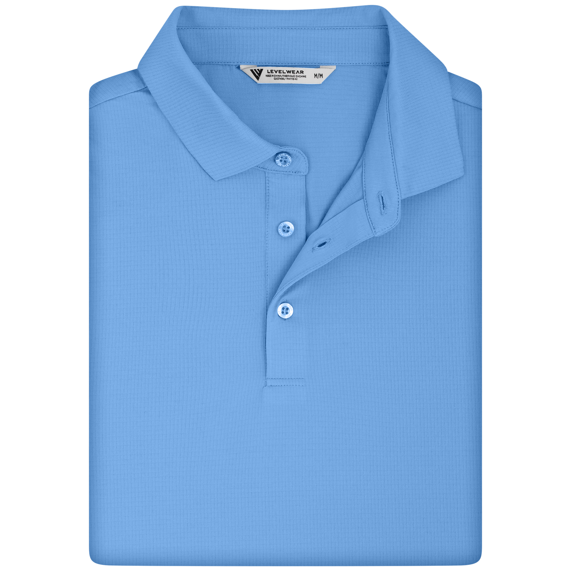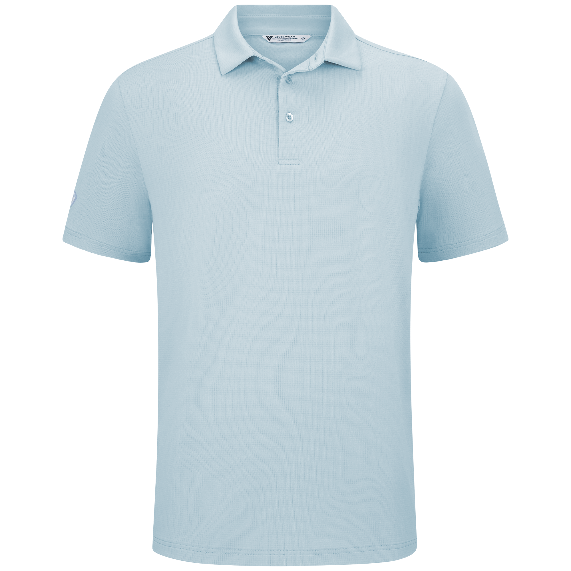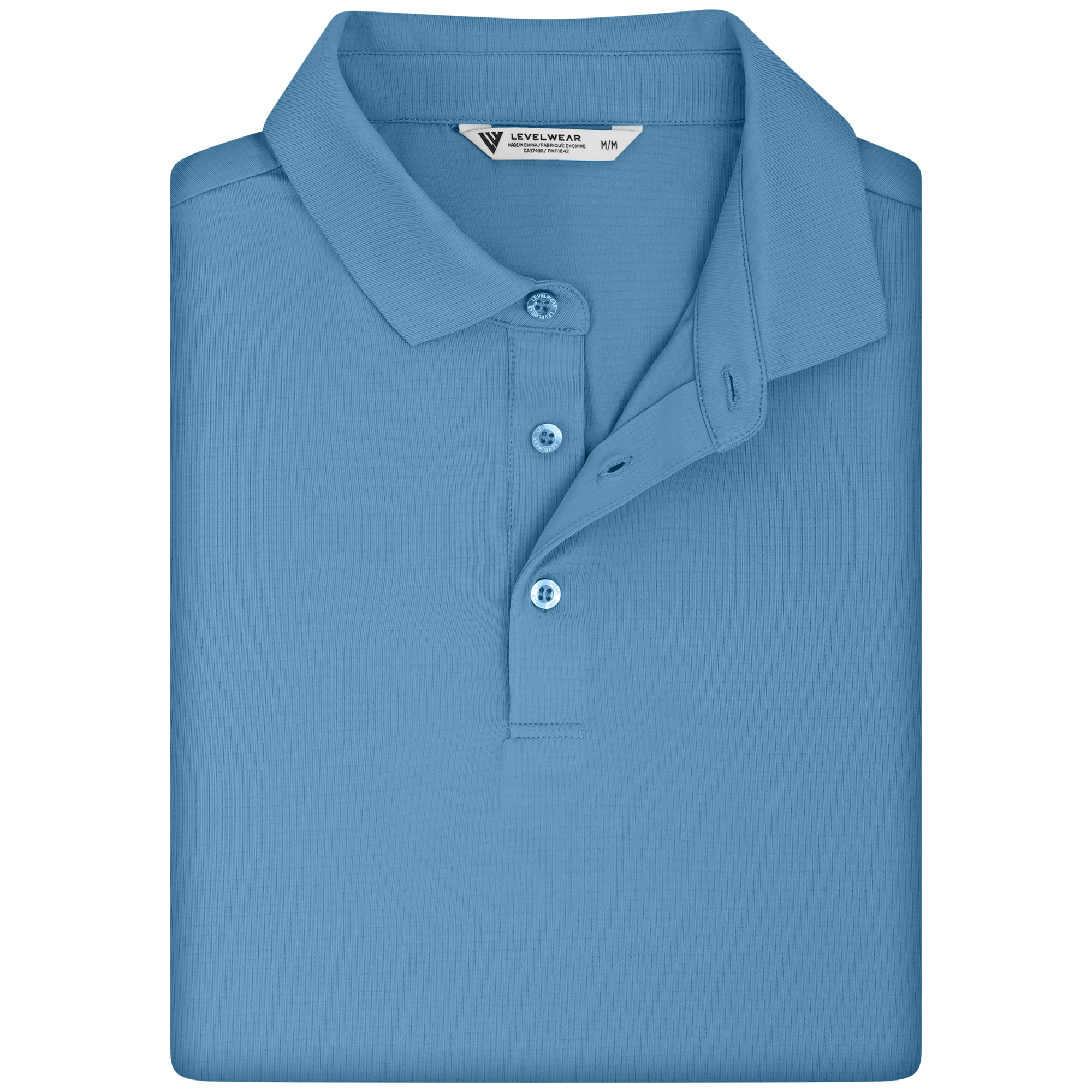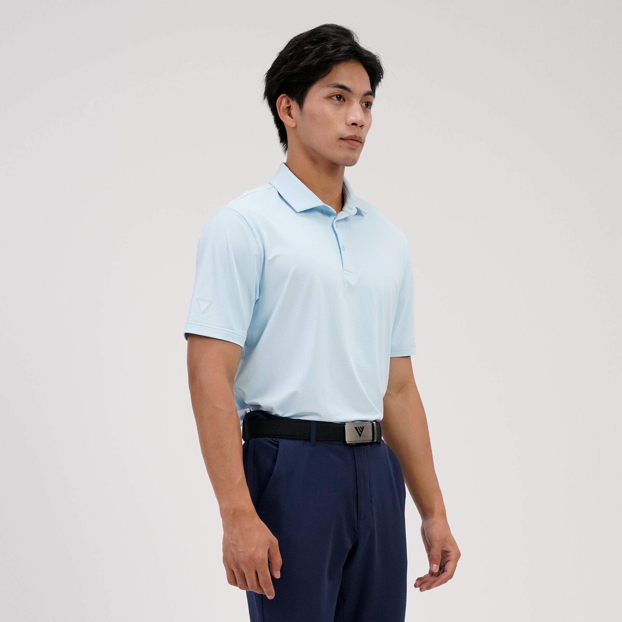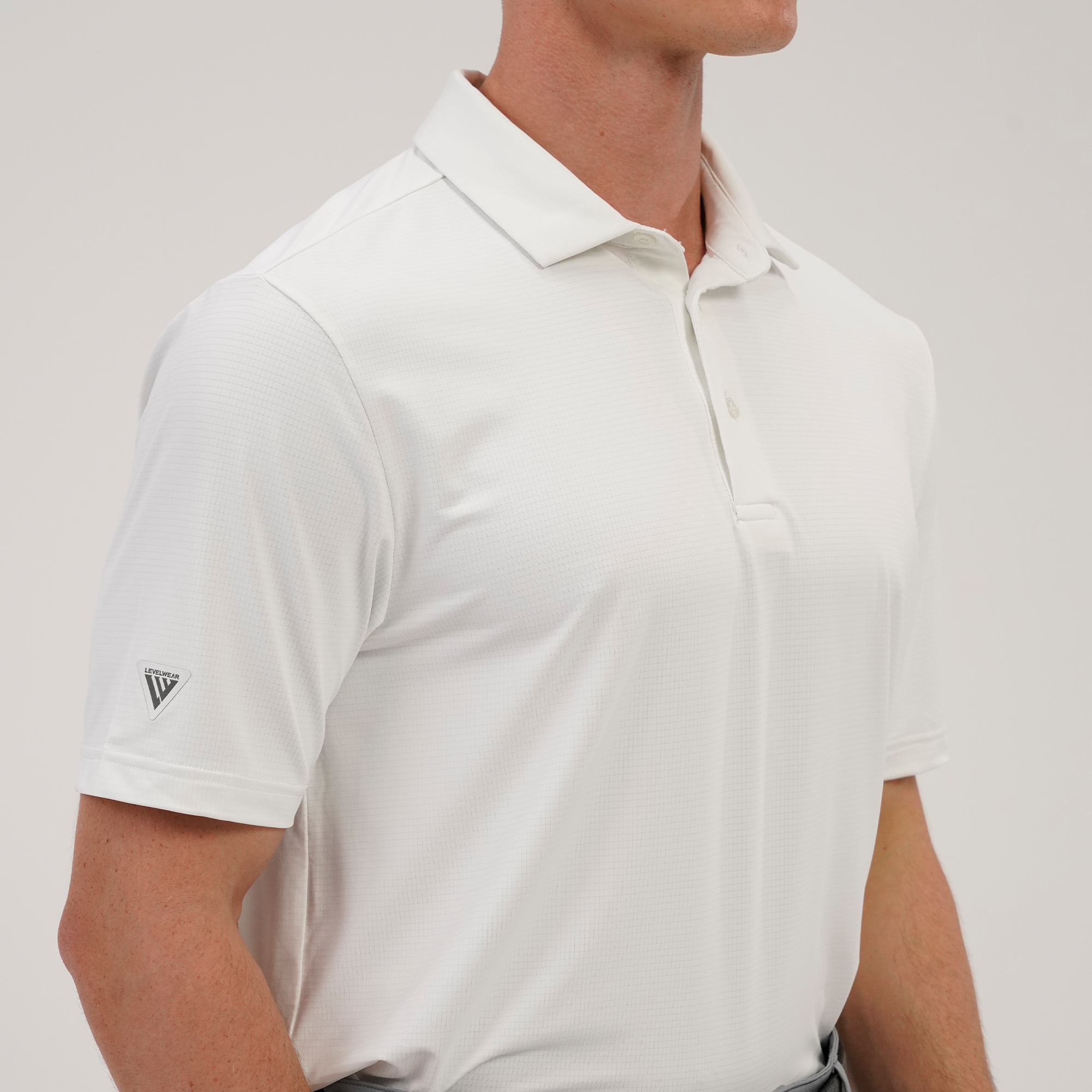 The Versa golf polo is built for on-course performance with moisture-wicking, anti-bacterial jacquard fabric that keeps you fresh and dry. Designed with a self-fabric collar and built-in collar stay, plus forward shoulder seams for added mobility. Made from 91% recycled polyester and 9% spandex for stretch and sustainability.