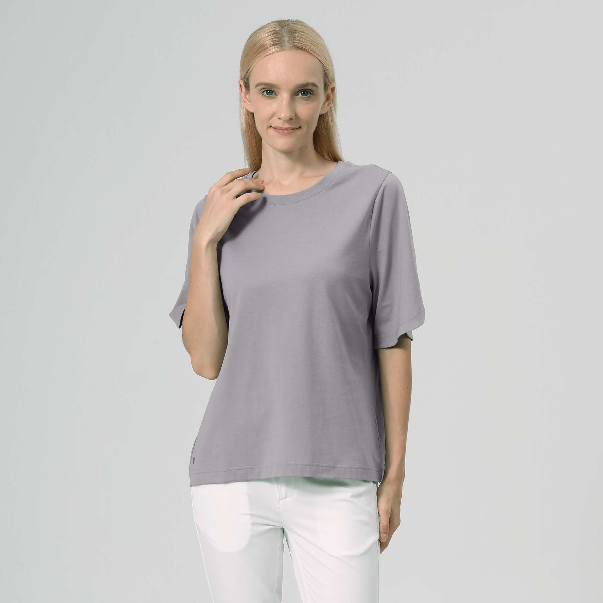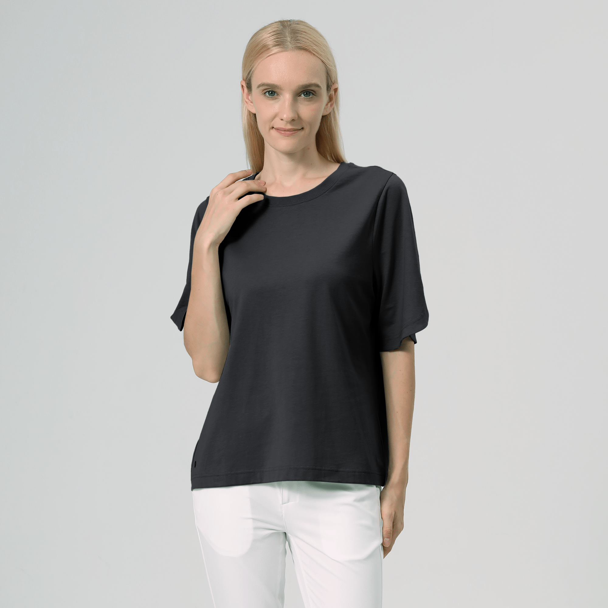 The Bloom is a chic and comfortable addition to any wardrobe, ideal for those who seek a blend of style and practicality. This piece is designed with a soft ribbed collar that adds a touch of texture and a cozy feel around the neck. One of its standout features is the crossover curve sleeve end detail, which brings a unique and stylish twist to the traditional long sleeve design. Made from a durable blend of 60% cotton and 40% polyester, the Bloom offers lasting comfort and easy maintenance. Whether you're dressing up for the office or keeping it casual for the weekend, this top pairs effortlessly with various looks, making it a versatile must-have for any season.