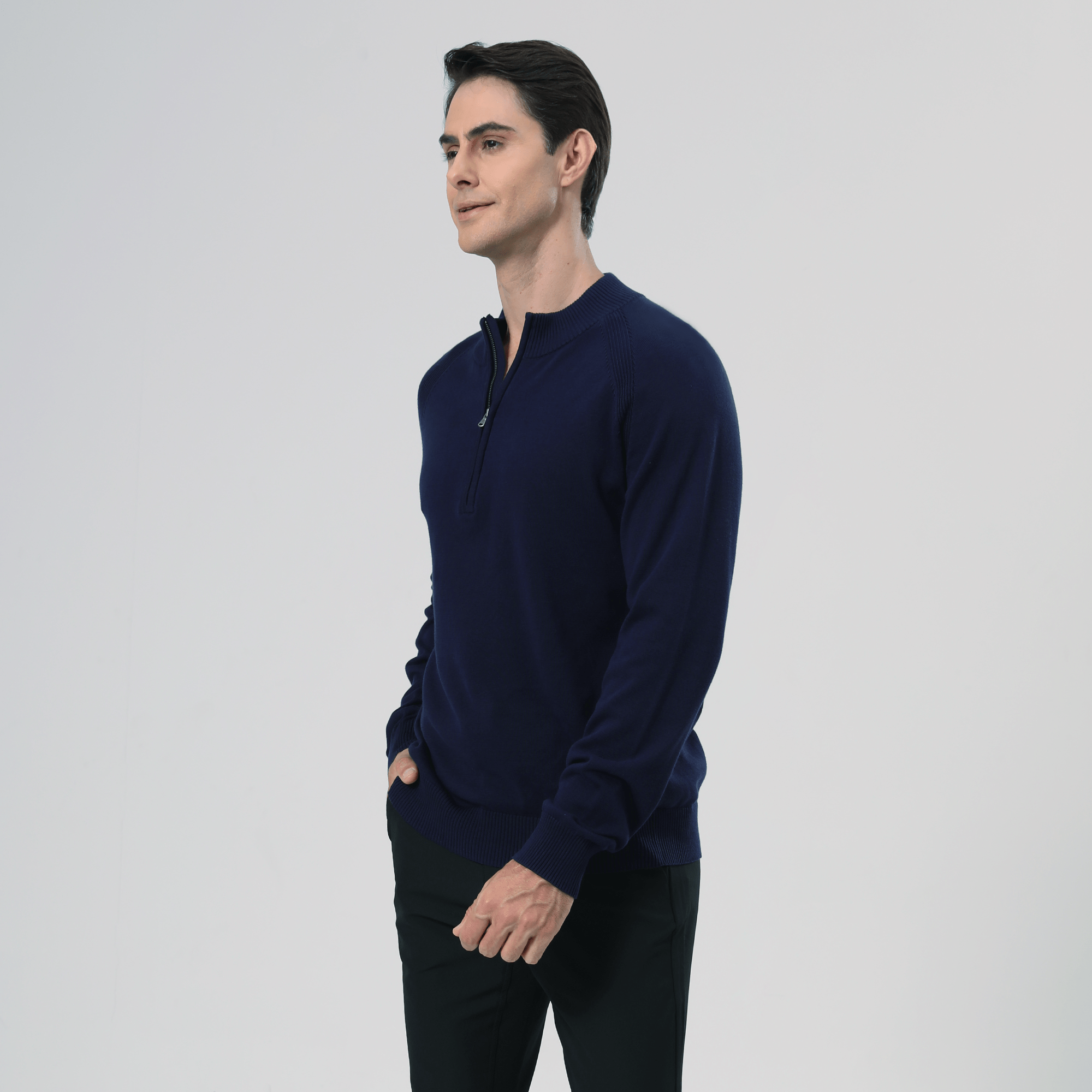 The Vineland quarter-zip is perfect for layering or wearing on its own. Made from 100% cotton, this pullover provides a comfortable and breathable fit. It features a quarter-zip with a stand-up collar for adjustable coverage, while the raglan sleeves with ribbing detail enhance mobility and style. The ribbed collar, cuffs, and body band add structure and ensure a snug fit, making the Vineland a versatile addition to any wardrobe. Ideal for casual wear or a day on the golf course, this piece combines timeless design with comfort.