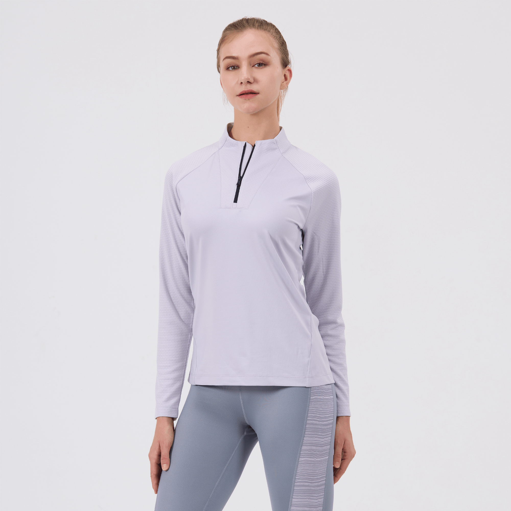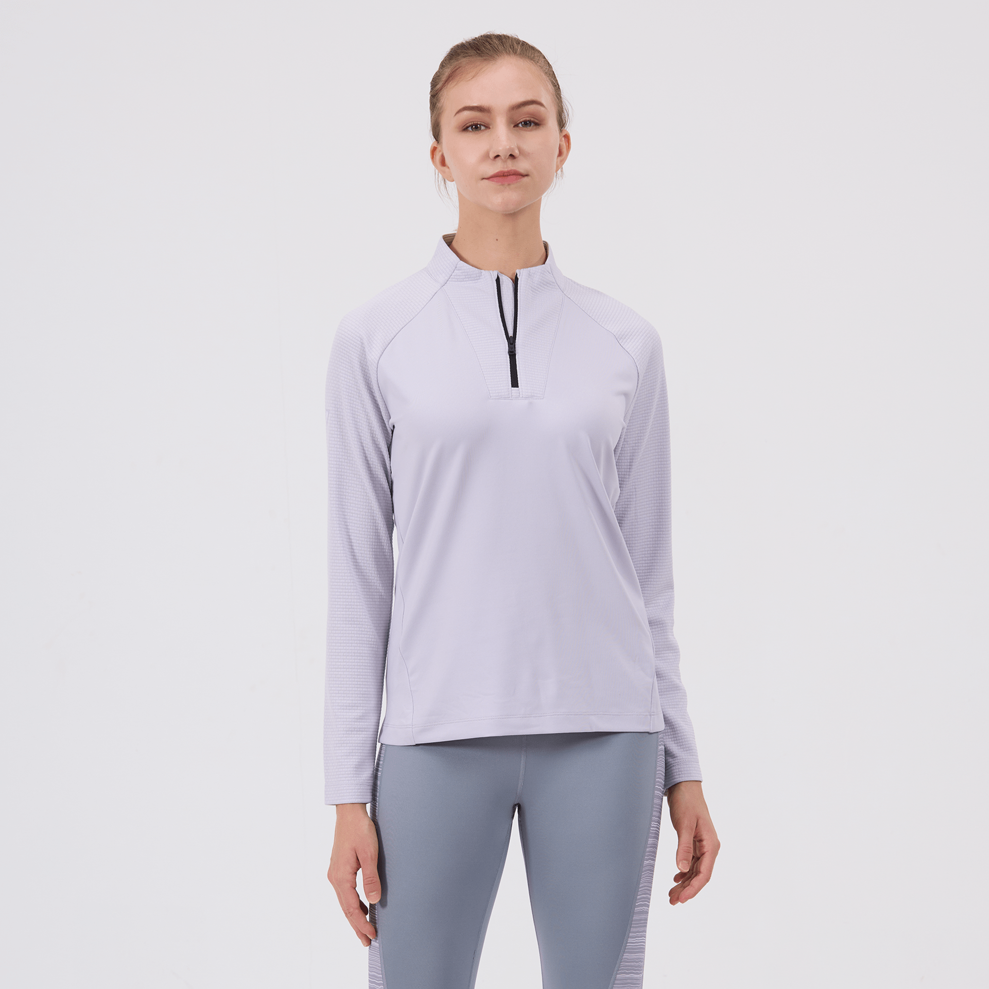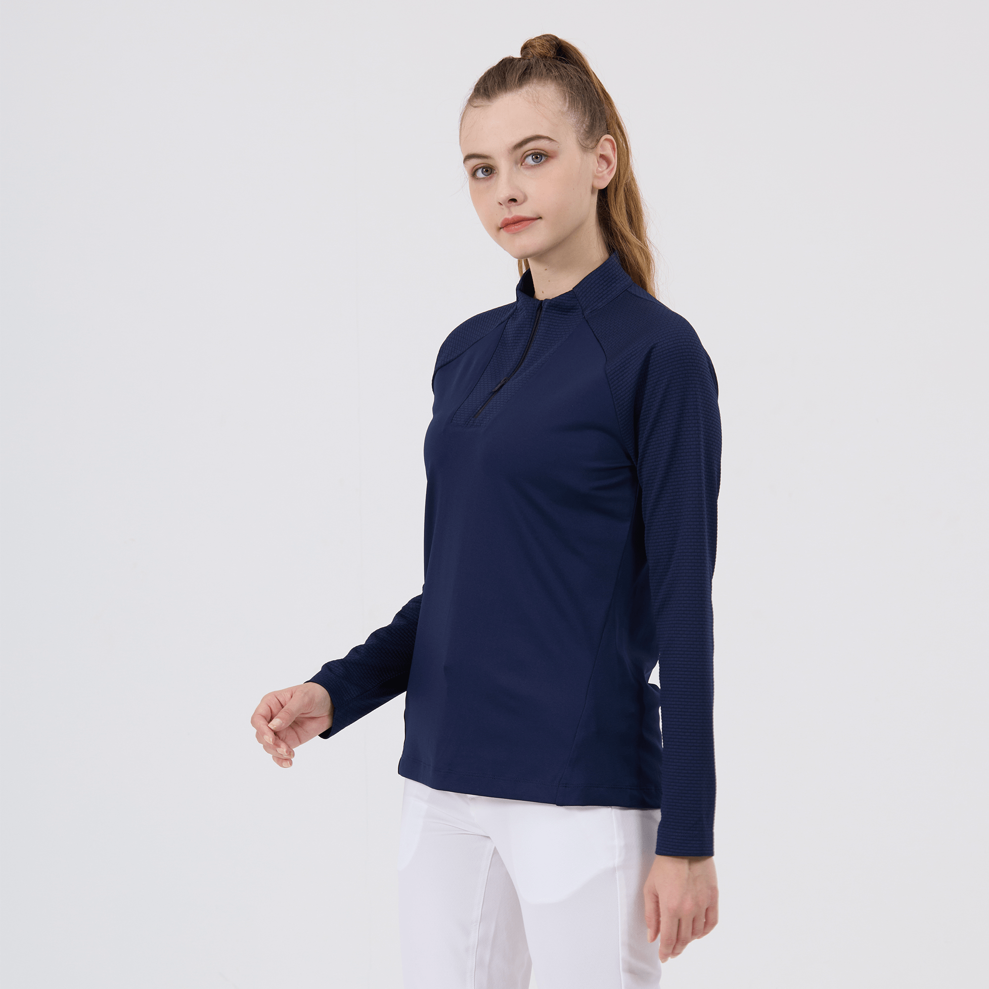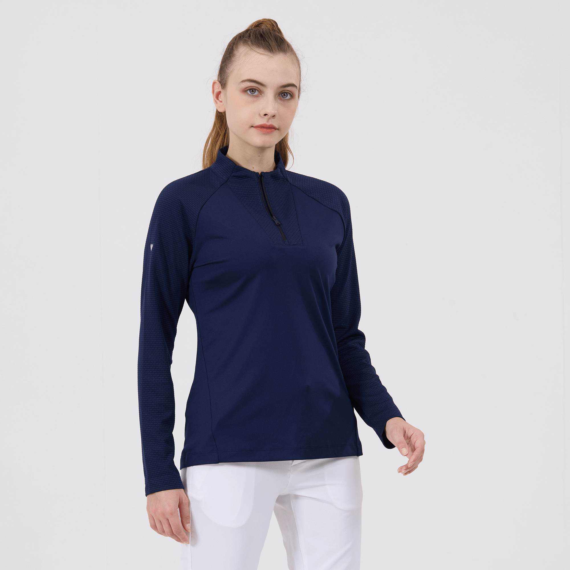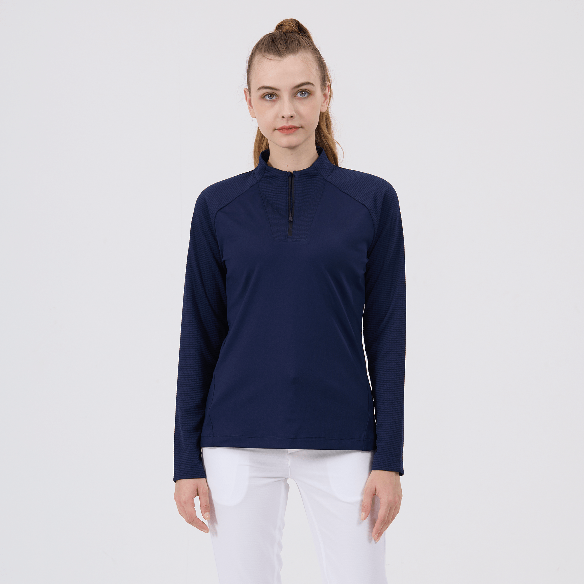 - Quarter-zip with stand-up collar
