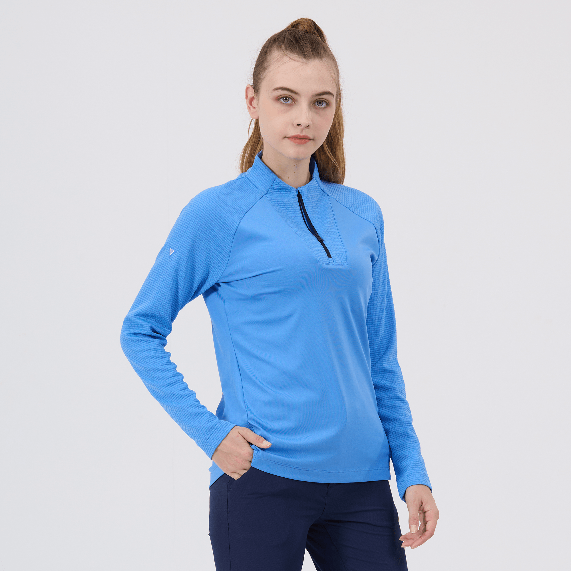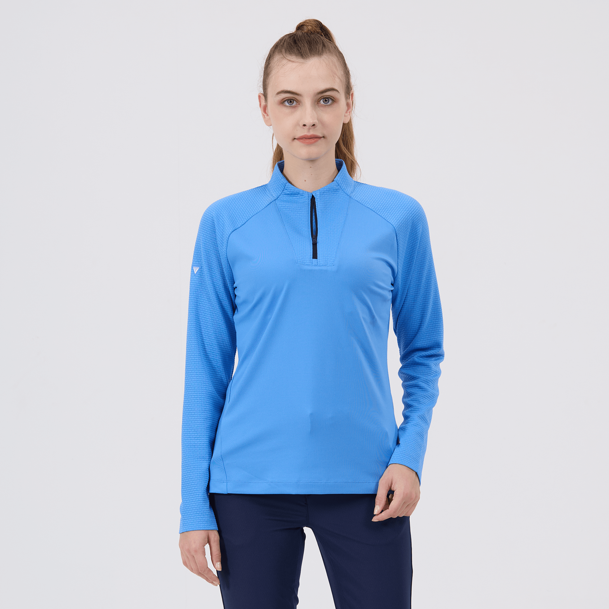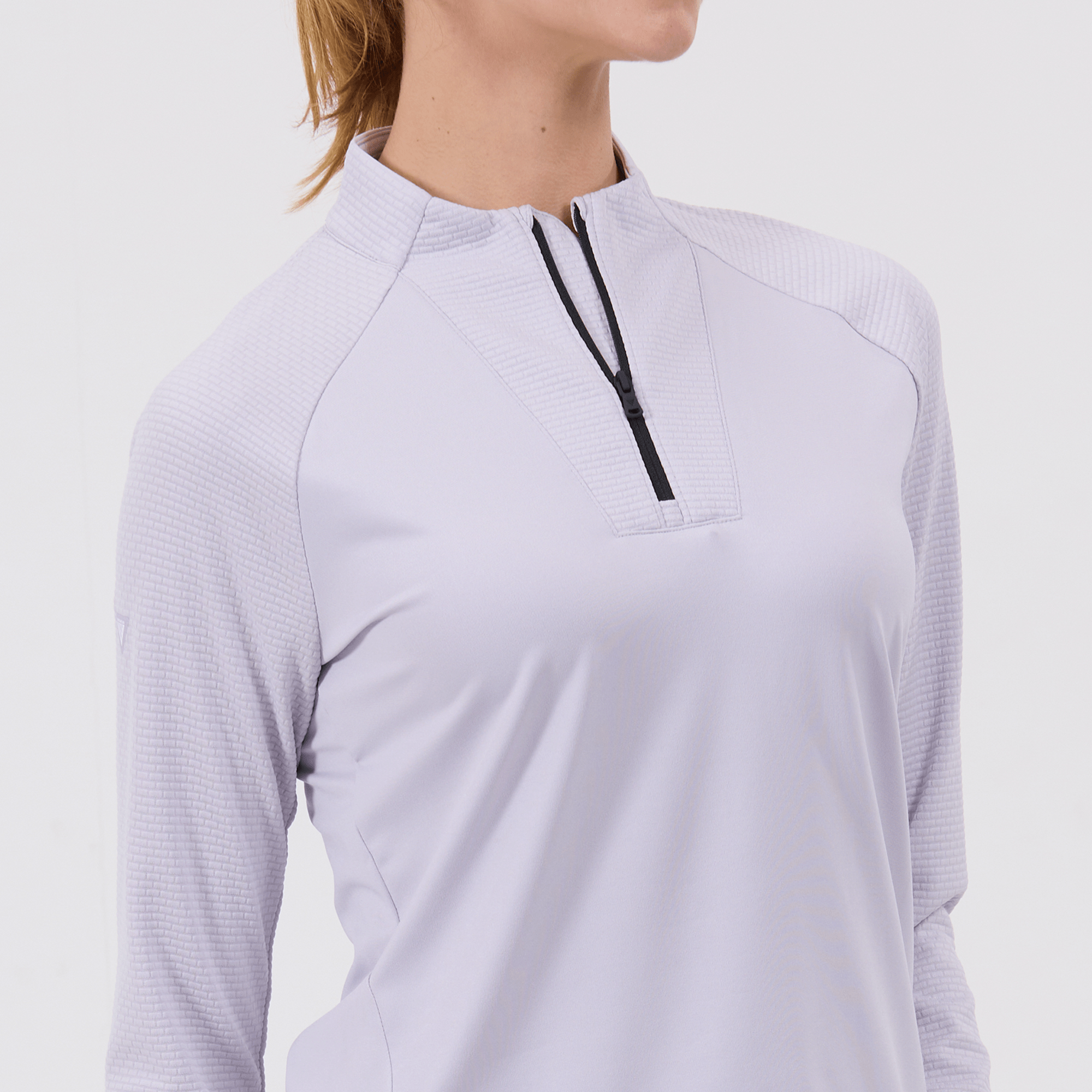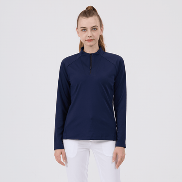 Upgrade your athletic wardrobe with the women's Volley midlayer, designed for optimal performance and distinctive style. This midlayer is constructed from 100% polyester, ensuring durability and comfort with every wear. It features advanced moisture-wicking technology that actively draws sweat away from the skin, keeping you dry and comfortable during intense workouts or casual activities. The quarter-zip with a stand-up collar allows for easy adjustment to suit changing temperatures, while the brick pattern contrast on the sleeves, collar, and zipper guard adds a stylish flair. Raglan sleeves and forward side seams improve mobility and create a flattering fit, and the high-low hem detail provides additional coverage without restricting movement. Perfect for layering or wearing solo, the Volley midlayer is a versatile addition to any active ensemble.