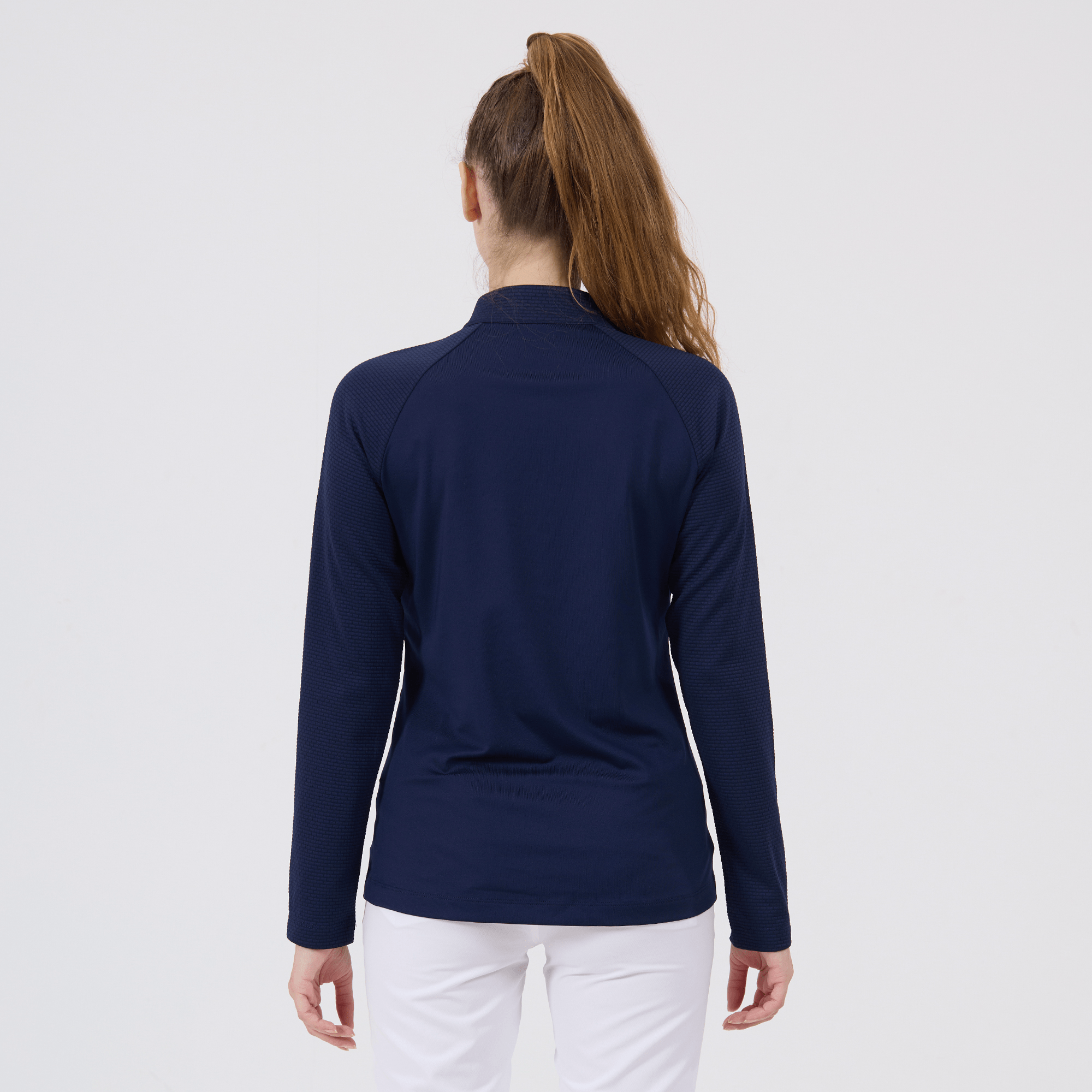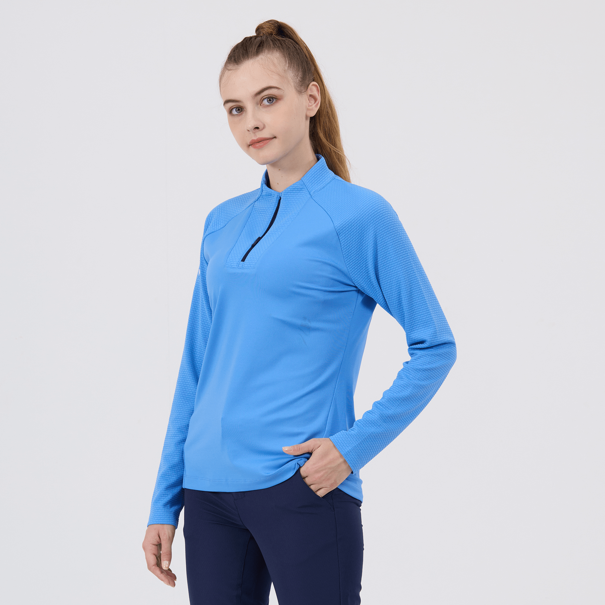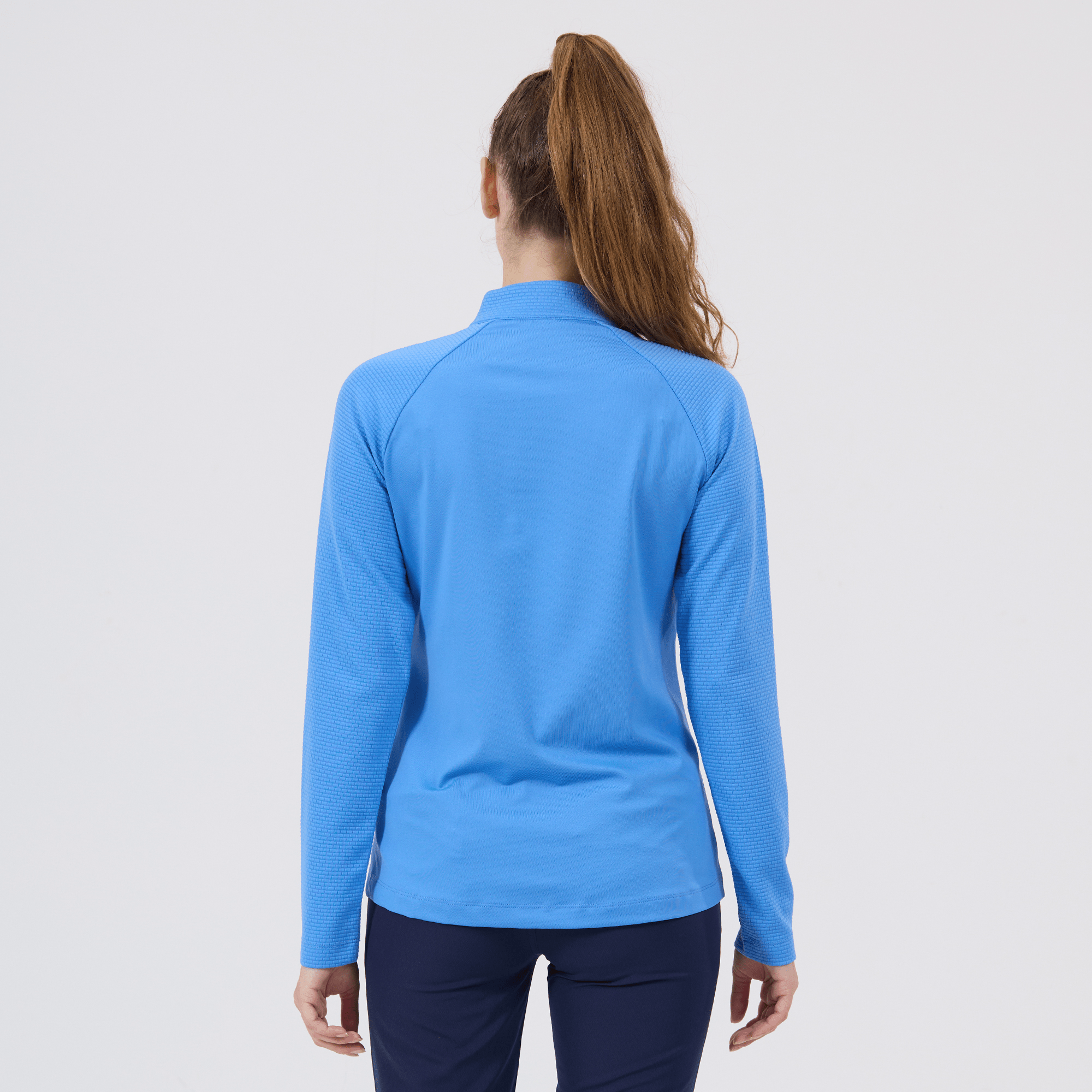 Upgrade your athletic wardrobe with the women's Volley midlayer, designed for optimal performance and distinctive style. This midlayer is constructed from 100% polyester, ensuring durability and comfort with every wear. It features advanced moisture-wicking technology that actively draws sweat away from the skin, keeping you dry and comfortable during intense workouts or casual activities. The quarter-zip with a stand-up collar allows for easy adjustment to suit changing temperatures, while the brick pattern contrast on the sleeves, collar, and zipper guard adds a stylish flair. Raglan sleeves and forward side seams improve mobility and create a flattering fit, and the high-low hem detail provides additional coverage without restricting movement. Perfect for layering or wearing solo, the Volley midlayer is a versatile addition to any active ensemble.