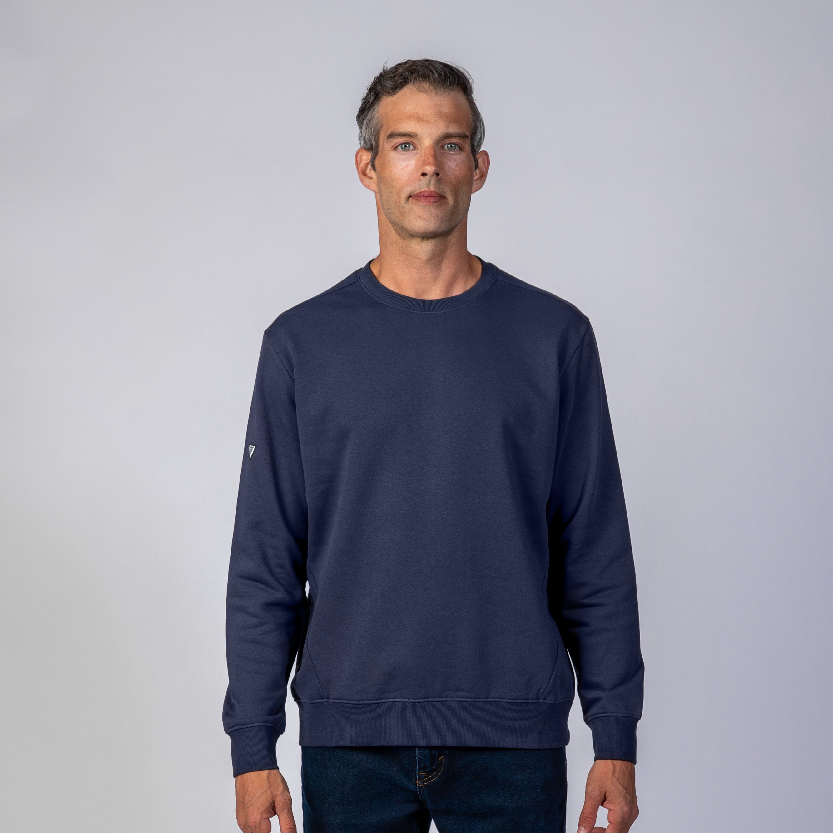 Step into refined simplicity with the men's Zane crewneck. Made from a blend of 80% cotton and 20% polyester, this crewneck offers both warmth and durability. It features a forwarded shoulder seam and engineered side seam that enhance fit and add an element of structured style. The ribbed collar, bottom hem, and sleeve cuffs ensure a snug feel while maintaining a polished look. Whether you're relaxing at home or out for a casual meet-up, the Zane crewneck is your ideal companion for understated style and relaxed wear.